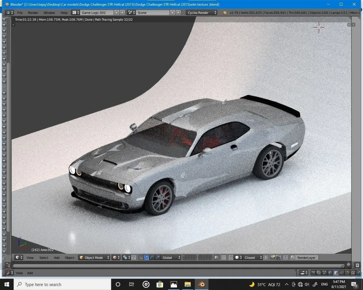 Dodge Challenger srt hillcat 2015 obj 3ds blender and fbx Low-poly 3D model