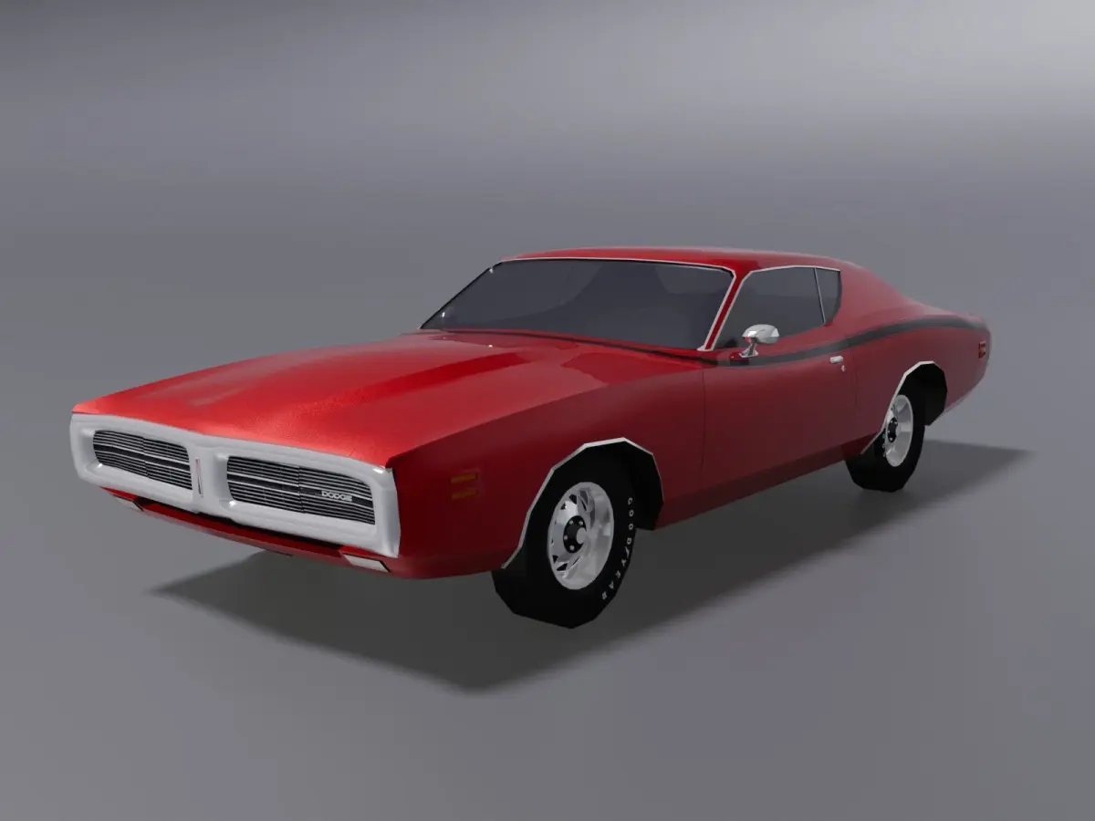 Dodge Charger SE 1971 low-poly 3D model prepared to drop to your scene and use for various purposes in game development or visualisations. All parts and scale properly made according to the blueprints. Materials and partial UV mapping with included textures applied. In total 5 823 faces, 10 948 triangles. Detailed exterior considering in scope of low-poly model, simple interior included - all panels covering car body, steering wheel, dashboard and seats are part of the model. If you would like to download other models, check my profile Levap