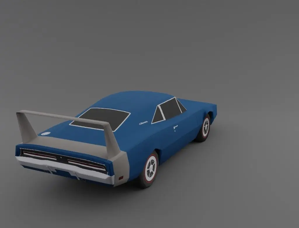 Lowpoly 3d model Dodge Charger Daytona. The model is made in blender version 3.2.2.The product consists of 324,022 vertices and 319,330 polygons, and also contains textures and normal maps.The 1969 Dodge Charger Daytona is an iconic car for the American NASCAR racing series, breaking the 200 mph (over 320 km/h) top speed for the first time and proving so fast that its successor was effectively outlawed for safety reasons.