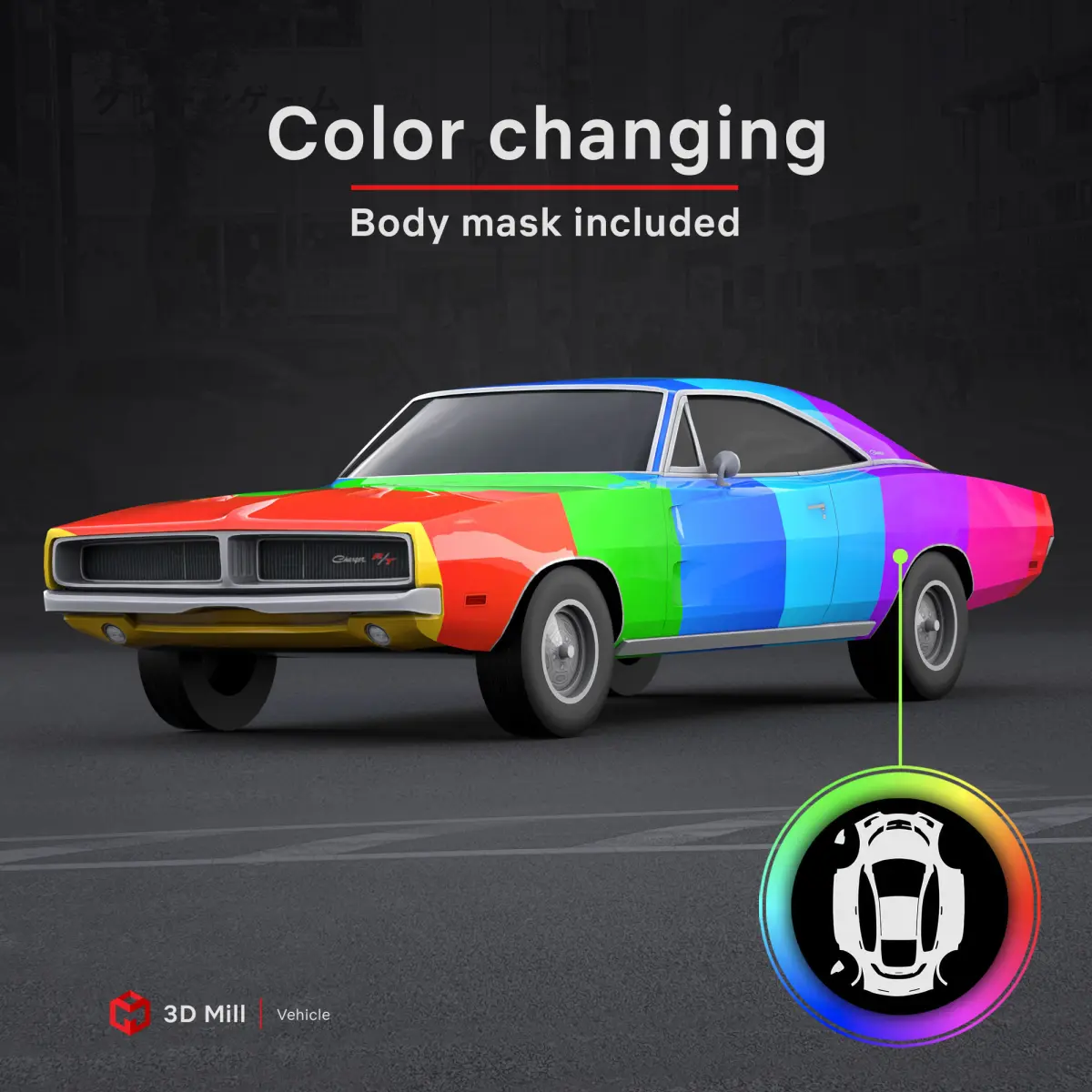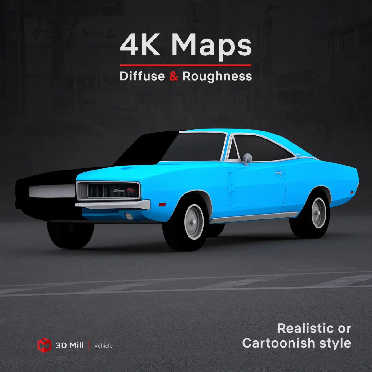 Dodge Charger RT 1969 AR/VR, LowPoly 3D Model
