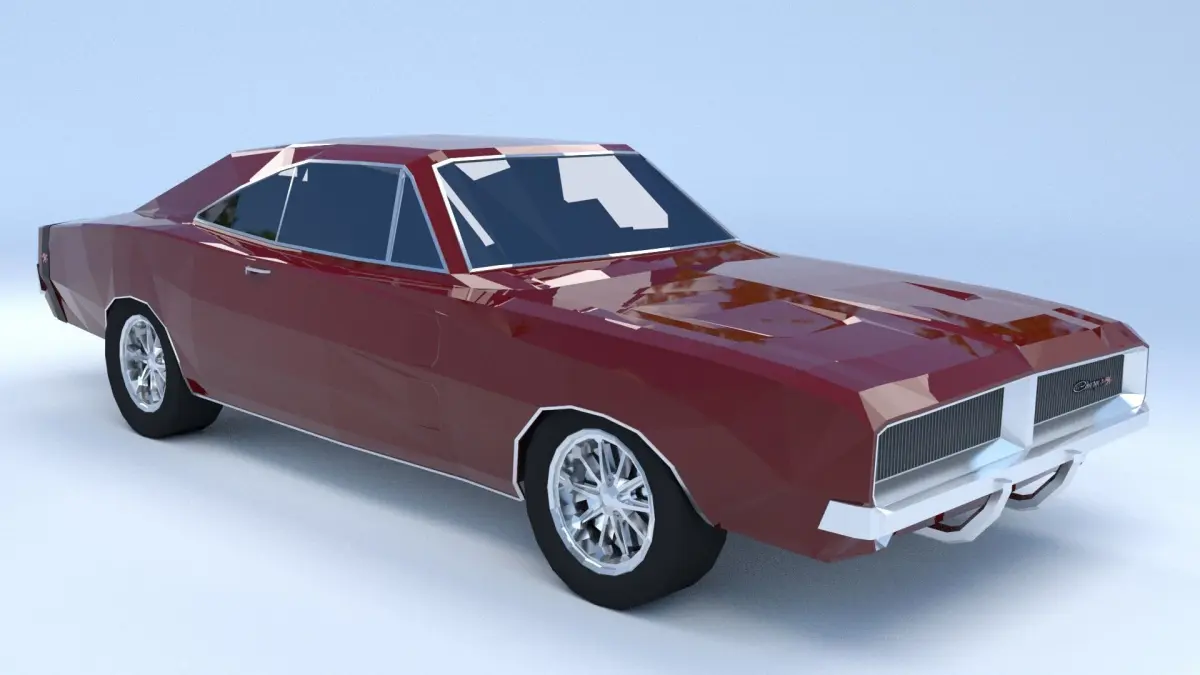 Based on Dodge Charger RTEntire model made by meall textures includedScene includedLow Poly ArtMade on Blender, rendered in CyclesModel with no interior