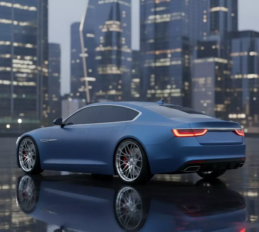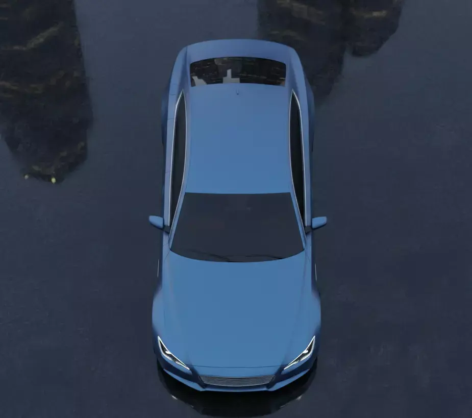 The headlights and taillights of the car are modeled with high precision, while the wheels are grouped separately and can be rotated, making this 3D model suitable for use in games or other interactive applications.