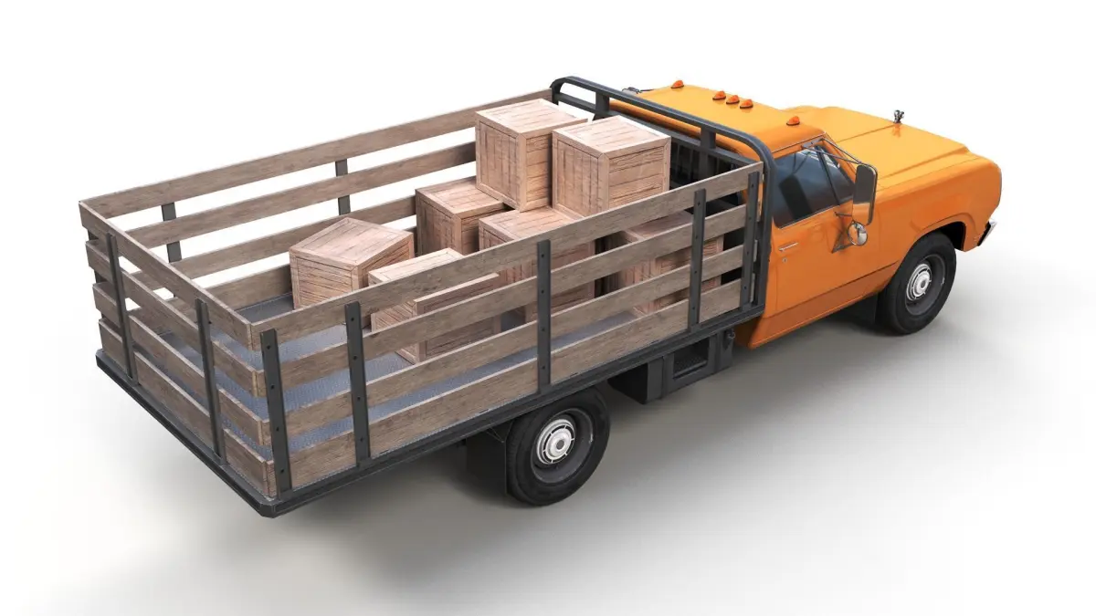 Two variants of cargo - big boxes in covers and small wood boxes.