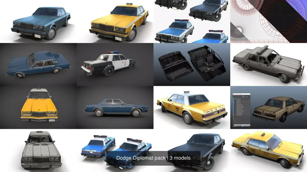 This pack includes sedan, taxi and police car. All models use PBR materials. Models look realistic and will be good part of your real time project.