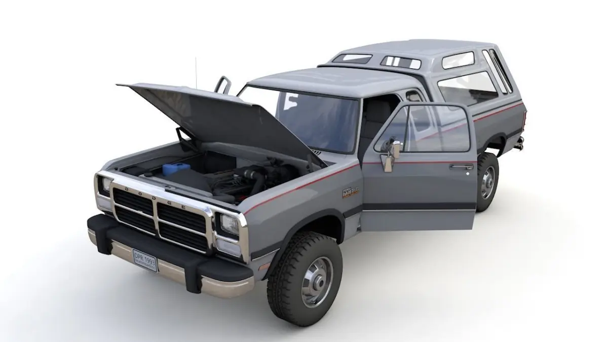 High detailed 3D model DODGE POWER RAM 250 1993, from inside and outside.