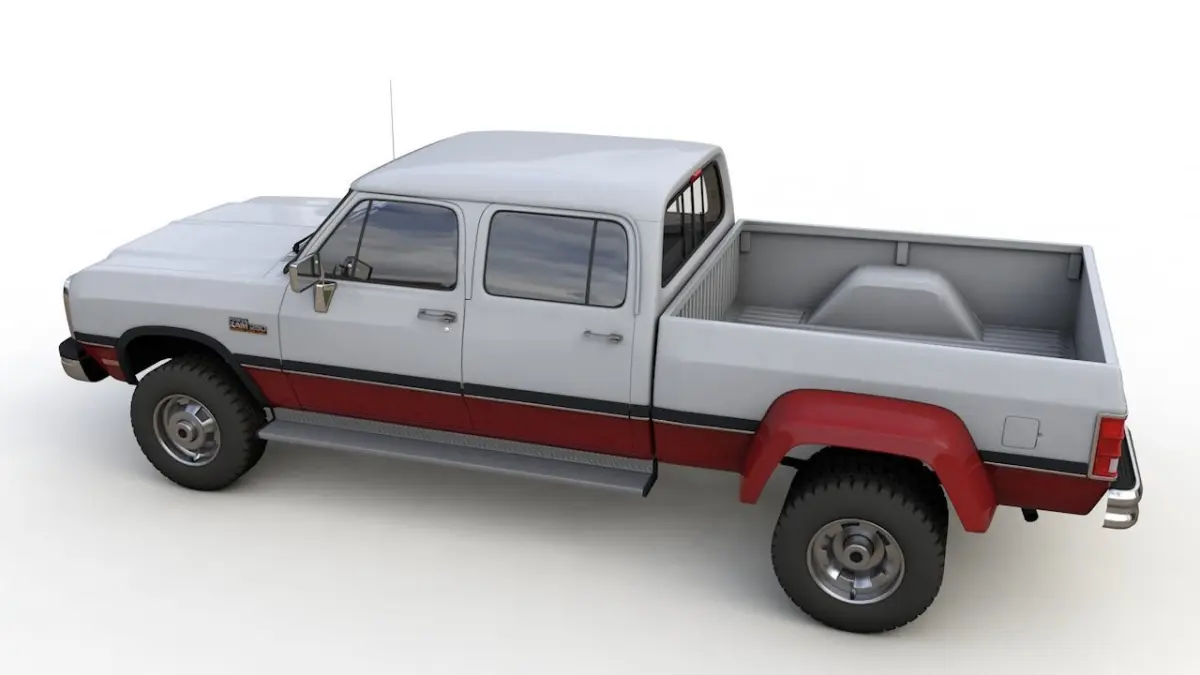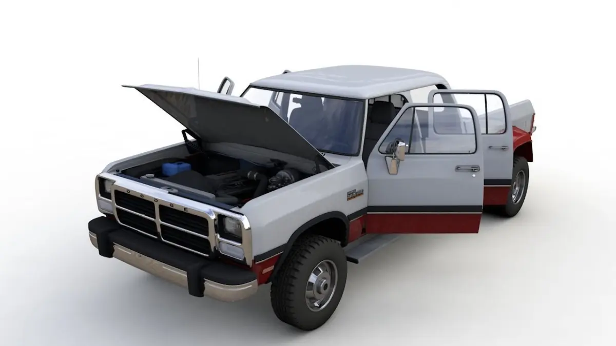 High detailed 3D model DODGE POWER RAM 250 CREWCAB 1991, from inside and outside.