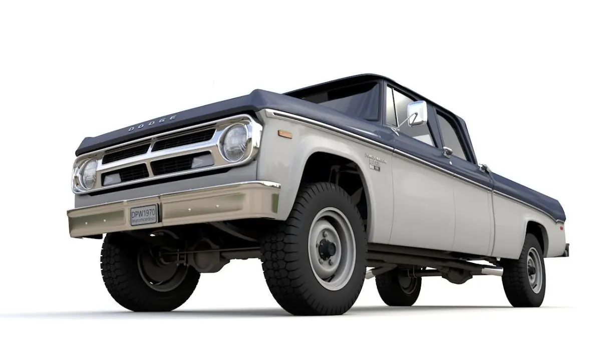 High detailed 3D model DODGE POWER WAGON CREW CAB TRUCK 1970 , from inside and outside.