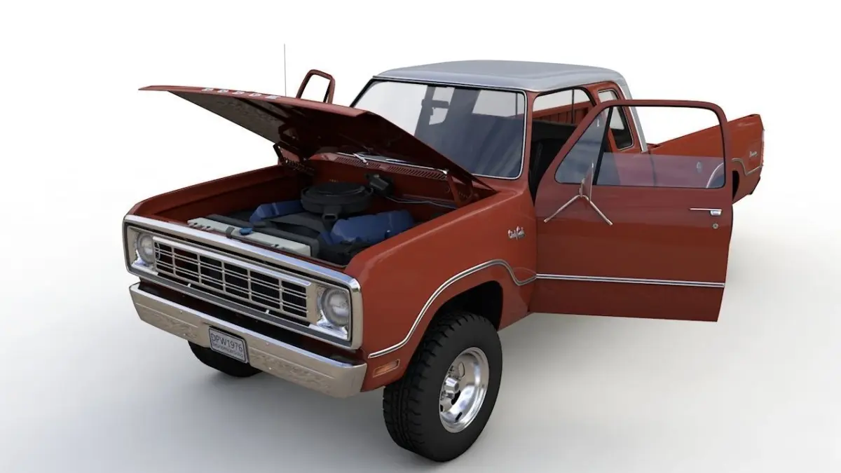 High detailed 3D model DODGE Power Wagon W200 ClubCab 4x4 S1 1976, from inside and outside.