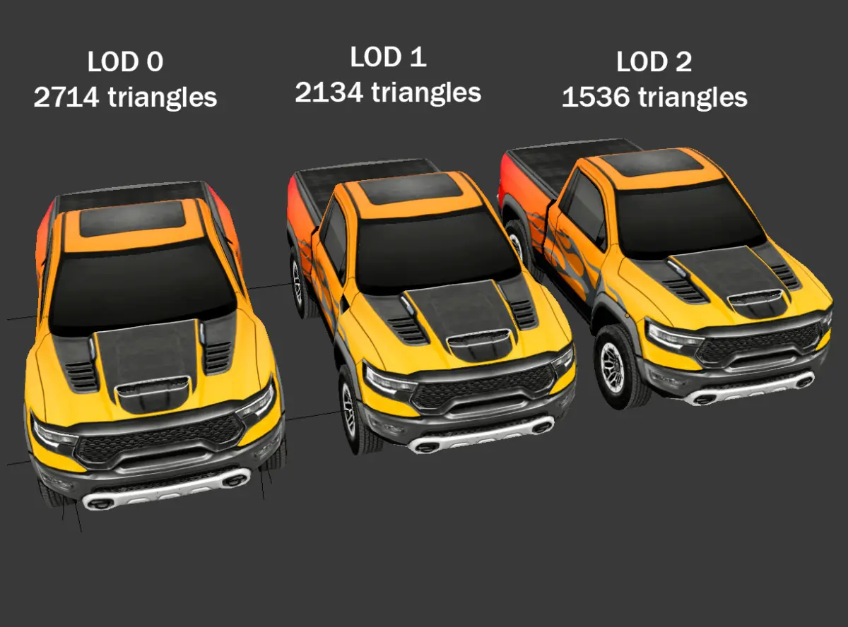 Dodge Ram 1500 TRX 3D Model – Game Ready | 3 LODs | Optimized for UnityOriginally created with Blender 3.6.Highly optimized and game-ready 3D model of the Toyota Mark II, based on real proportions and references from open sources. Ideal for use in games, interactive applications, or visualizations.