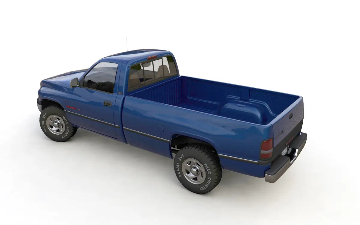 High detailed 3D model 1995 DODGE RAM 1500 Single Cab, from inside and outside.