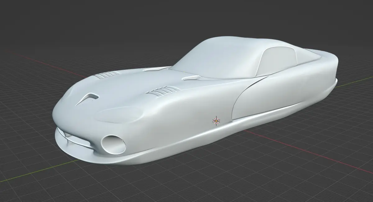 A sleek and minimal speedform sculpture inspired by the aggressive silhouette of 1990s American muscle cars. This model captures the bold proportions and flowing curves typical of that era, making it ideal for design presentation, 3D printing, and display use.