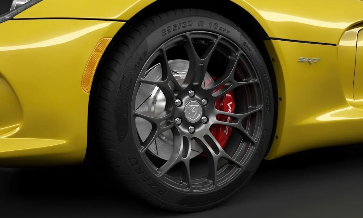 - Pirelli P Zero tires with sidewall textures. The textures include two variants of tire sizes. Front: P295/30R18. Rear: P355/30R19.