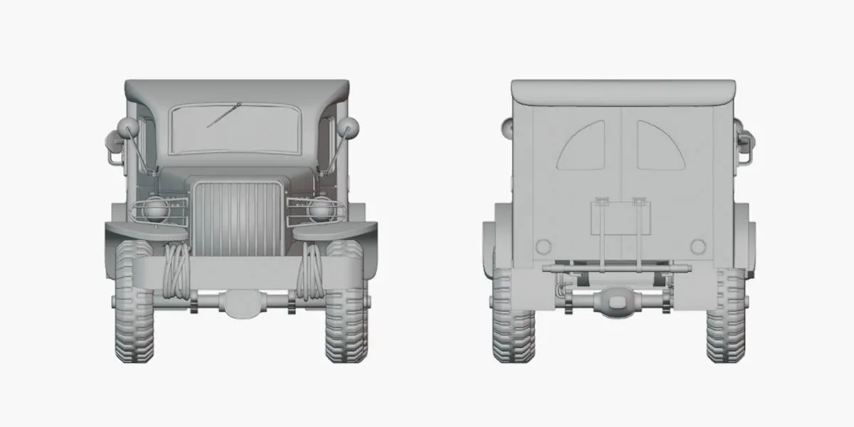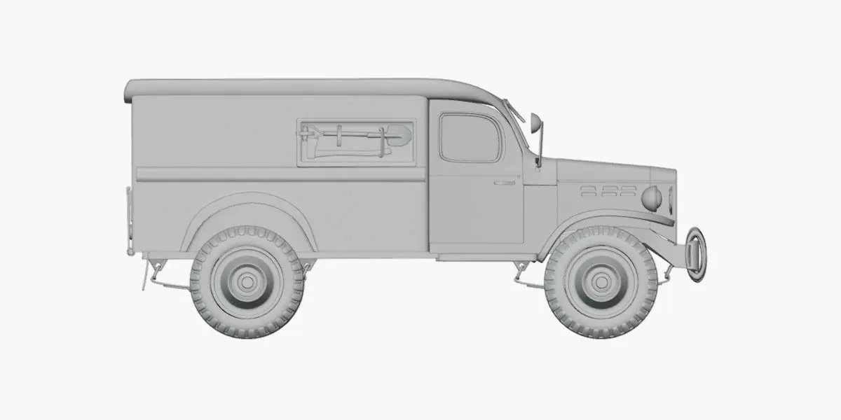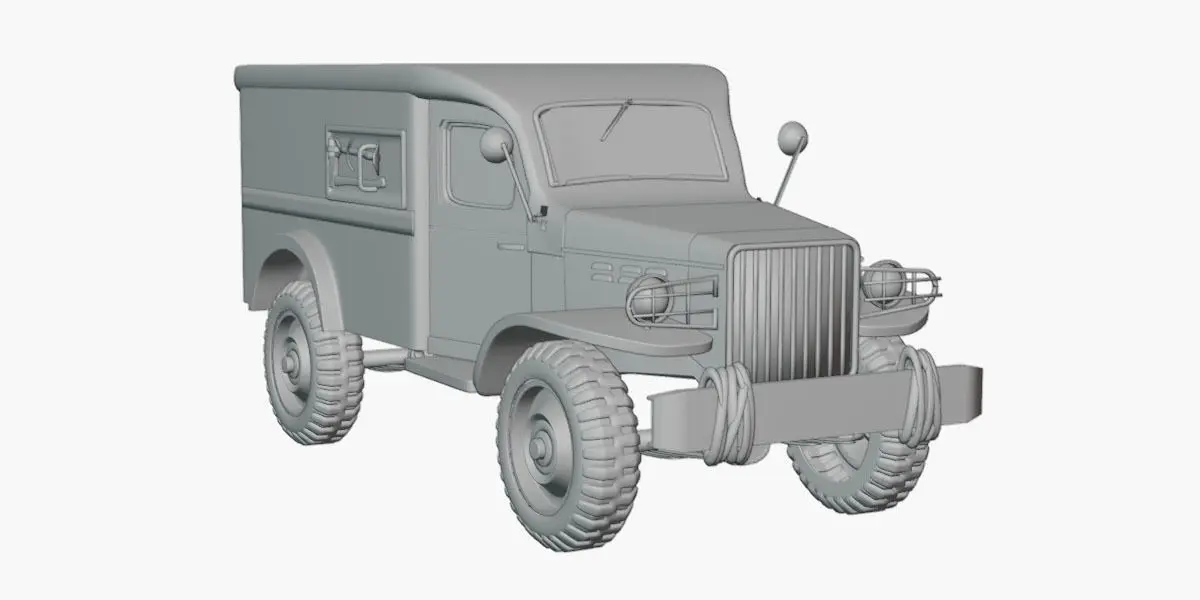The Dodge WC-54 Miltary World War II. The models are configured in Blender 4 using the cycles render engine, guaranteeing accurate representation of the provided images. high and low poly versions available in OBJ and FBX formats. PBR 2K maps, enabling seamless integration into various 3D applications, Unreal Engine, or Unity.