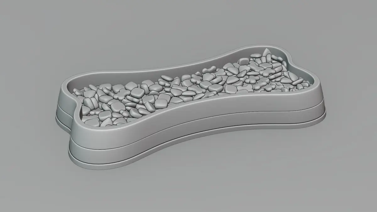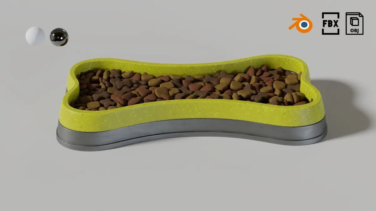 Dog bowl shaped 04 with dog croquettes 4k texture maps.