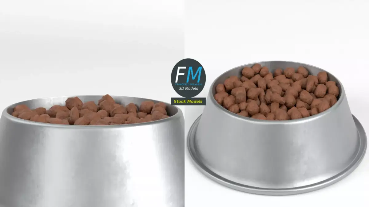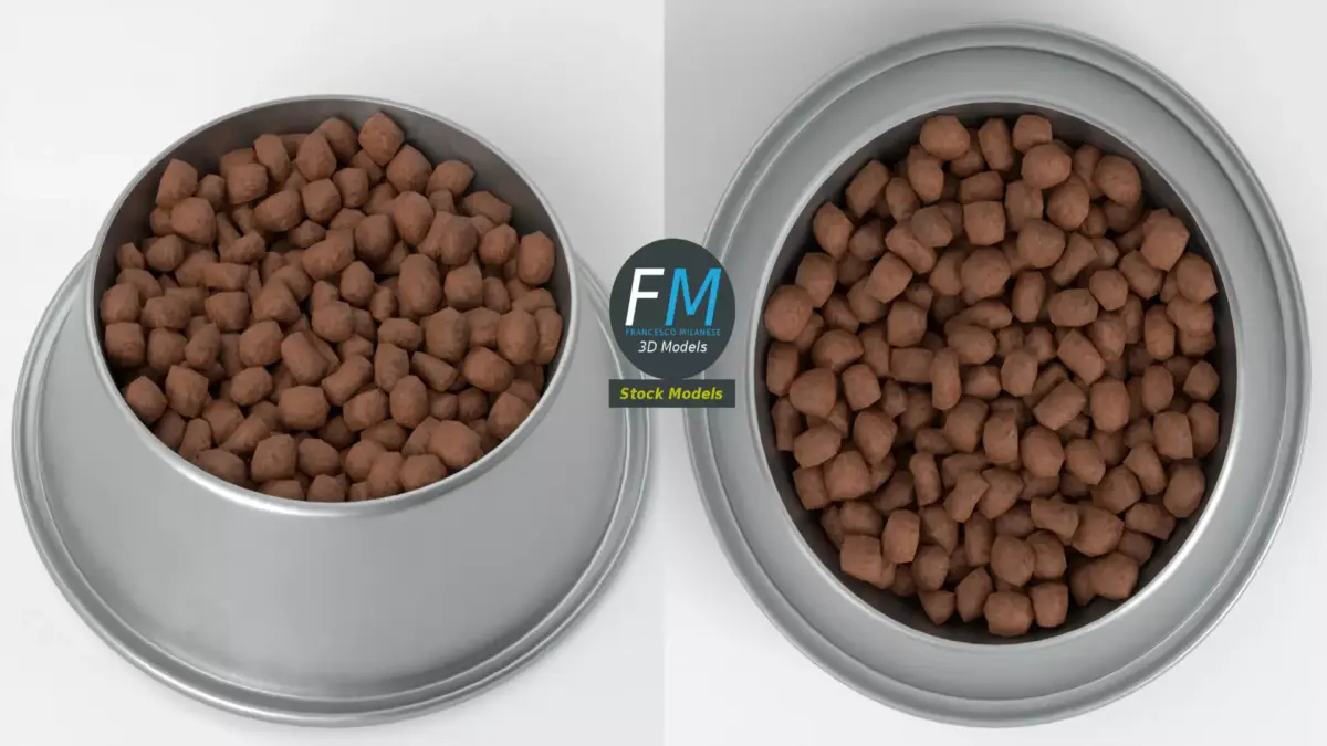 Dog bowl with food 3D Model. 2 individual objects (bowl, food), each one with its own non overlapping UV Layout map, Material and PBR Textures set. Production-ready 3D Model, with PBR materials, textures, non overlapping UV Layout map provided in the package.Quads only geometries (no tris/ngons).Easily customizable: UV unwrapped geometries; UV Layout maps provided in the package as png with alpha images.