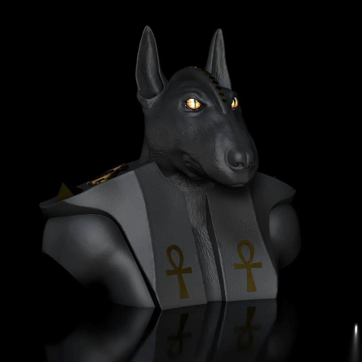 Bull Terrier - Anubis Bust STL 3D Print ModelHigh-Polygon