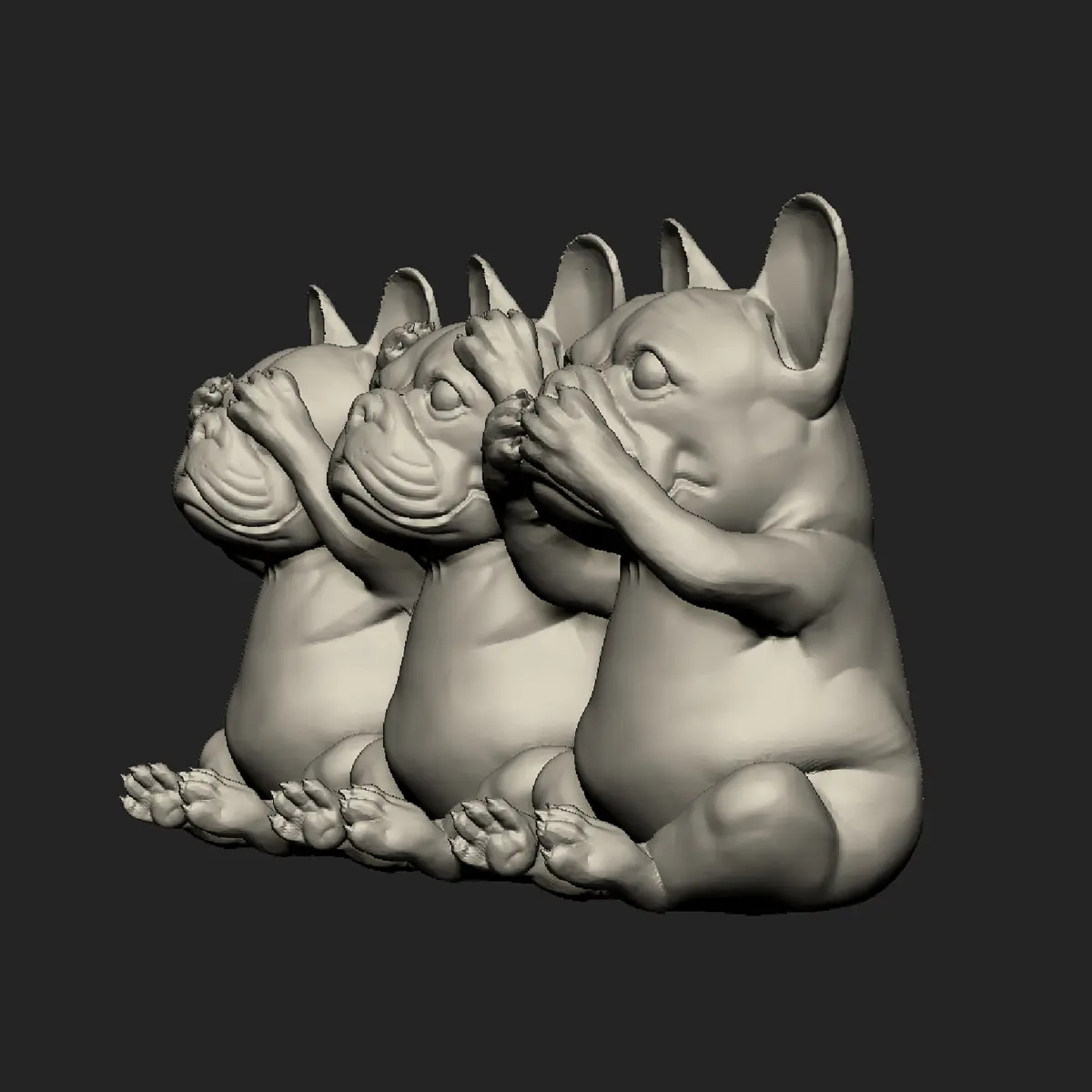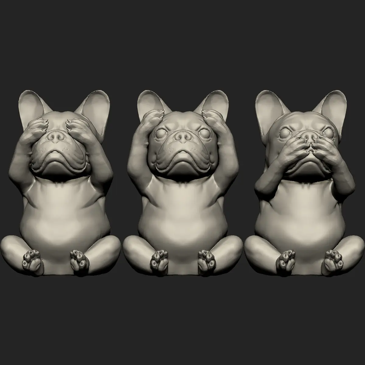 DOG Bulldog See No Evil Hear No Evil Speak No Evil 3D model