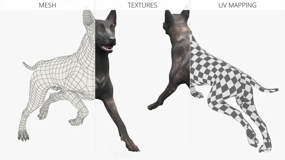 Dog Dutch Shepherd Running Pose is a high quality, photo real 3d model that will enhance detail and realism to any of your rendering projects. The model has a fully textured, detailed design that allows for close-up renders, and was originally modeled in 3ds Max 2020 and rendered with V-Ray. Renders have no postprocessing!
