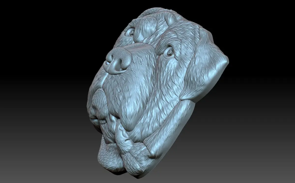 3d bas-relief with the image of a dog's head. The details on the model are well worked out, which attracts attention and gives an interesting look to the model.Suitable for CNC and 3D printing.