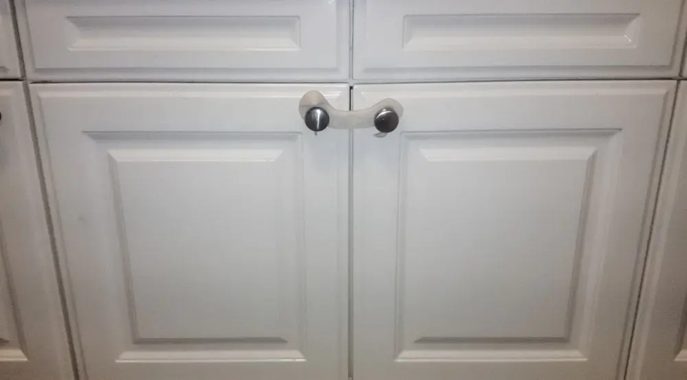 Our Kitchen Waste Bin is behind one of these doors and our dog has worked out how to open the door from the bottom - big problem as she eats anything! This stops her :)