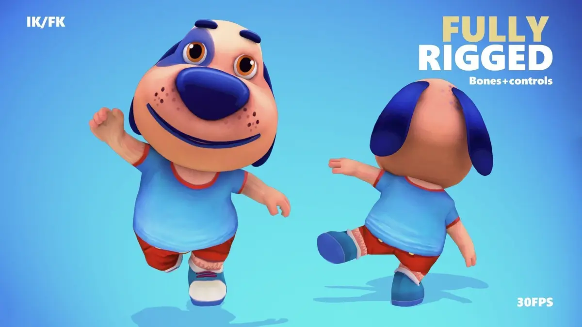 Cartoon Dog puppy character for games and animations. The model is game ready and compatible with game engines.