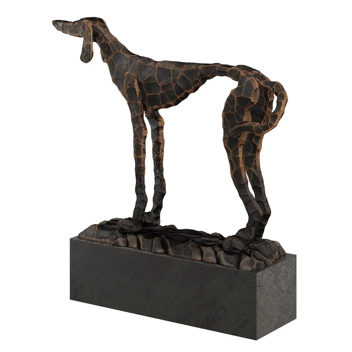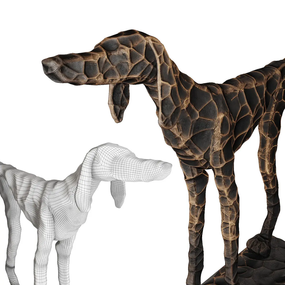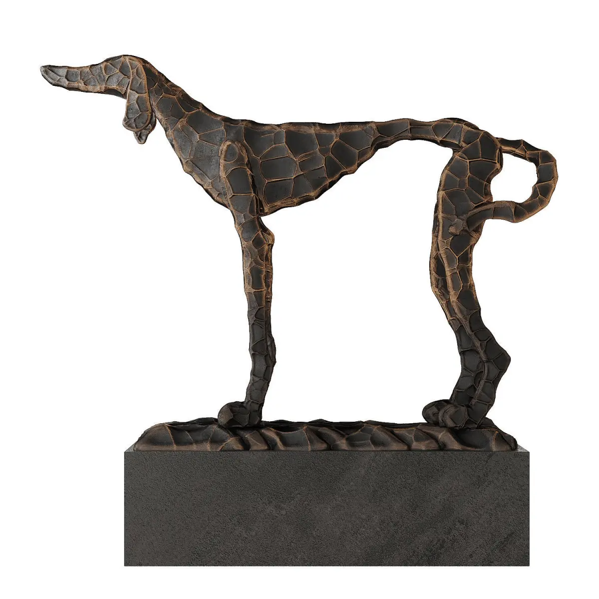 Metal figurine of a dog on a pedestal. The relief is made by texture. Model has own unwrap map.