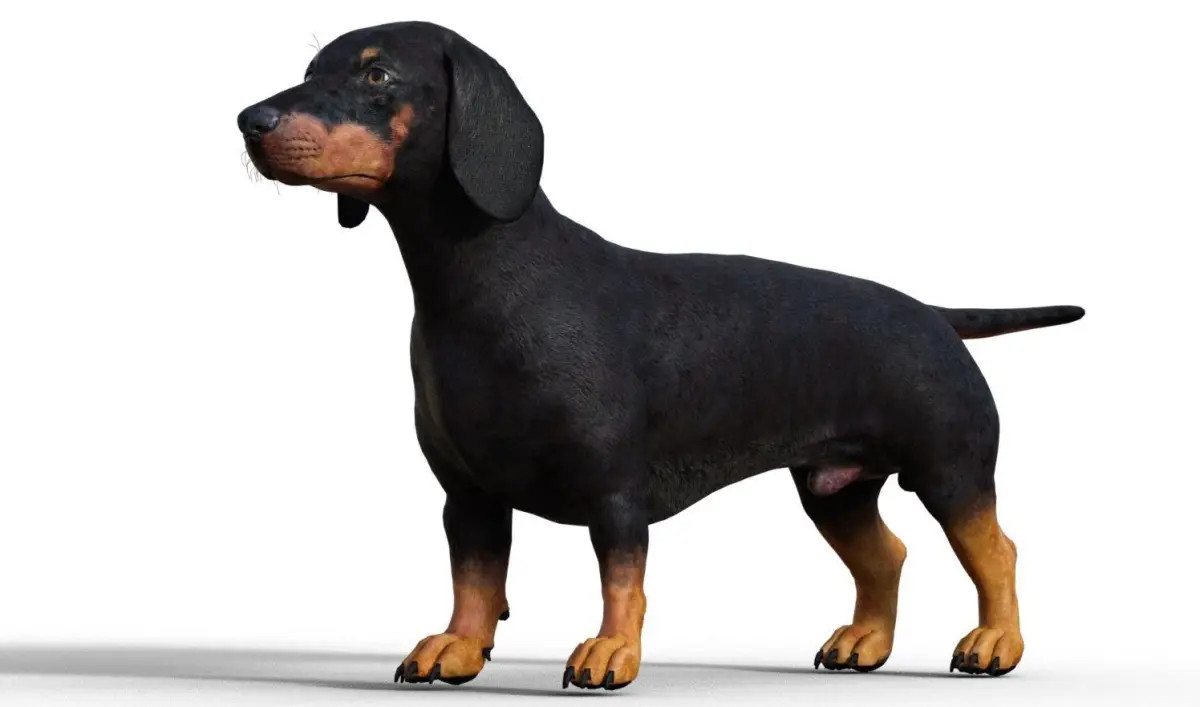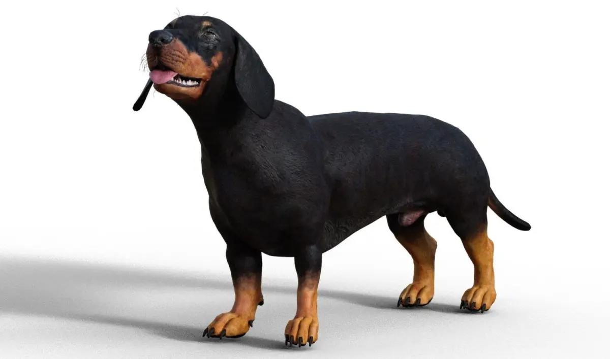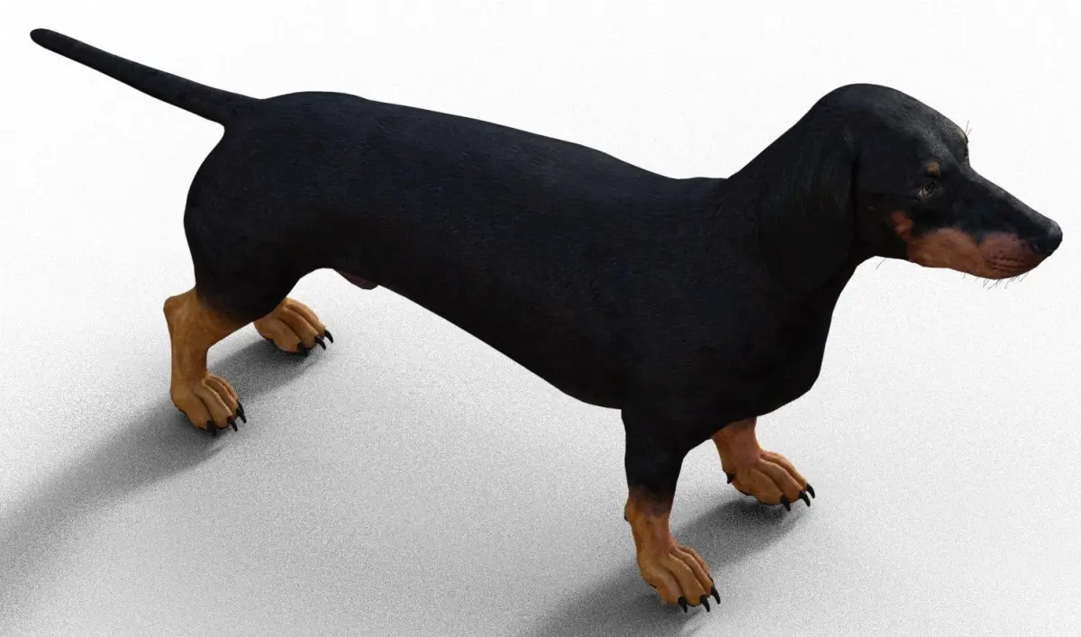 3D model of a dog with short legs.