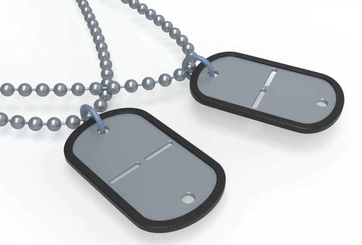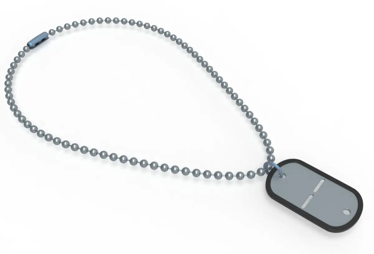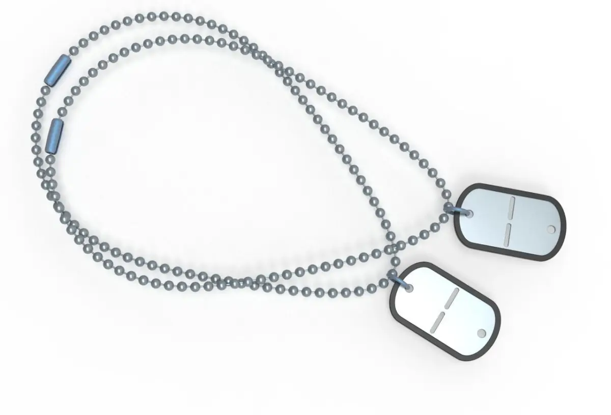 Dog tags -Dog tags on a ball chain High quality 3D model l. The model was originally modeled in Maya 2018 rendered in keyshot (with standard keyshot material). The high-quality polygonal model included detailed enough for close-up renders High-quality polygonal model is smooth enabled, good for vector rendering. No special plugin needed The presentation images were rendered in MAYA and keyshot -OBJ low poly and HI poly-mb-keyshot file-FBX