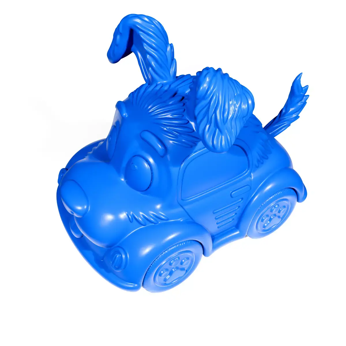 This playful dog toy car combines the fun of pets with the fascination of vehicles, offering an engaging experience for kids and hobbyists alike. The whimsical design includes exaggerated features like large eyes and floppy ears, adding a touch of personality and charm.