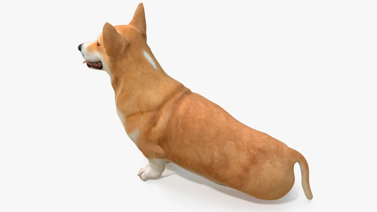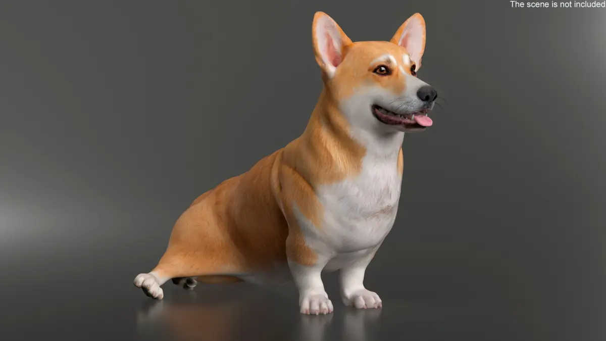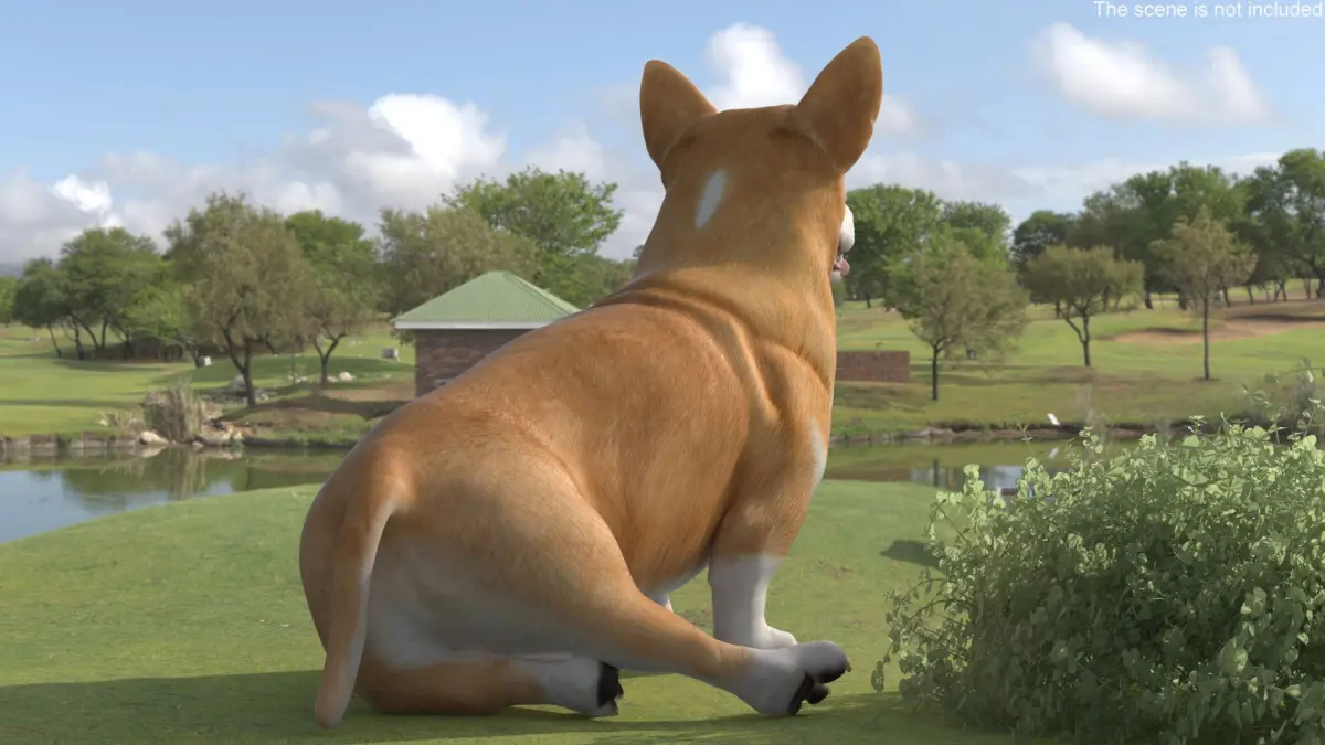 Dog Welsh Corgi Pembroke Sitting Pose is a three-dimensional model of Pembroke Welsh Corgi, that is a small herding dog breed known for its fox-like appearance, short legs, and friendly personality.