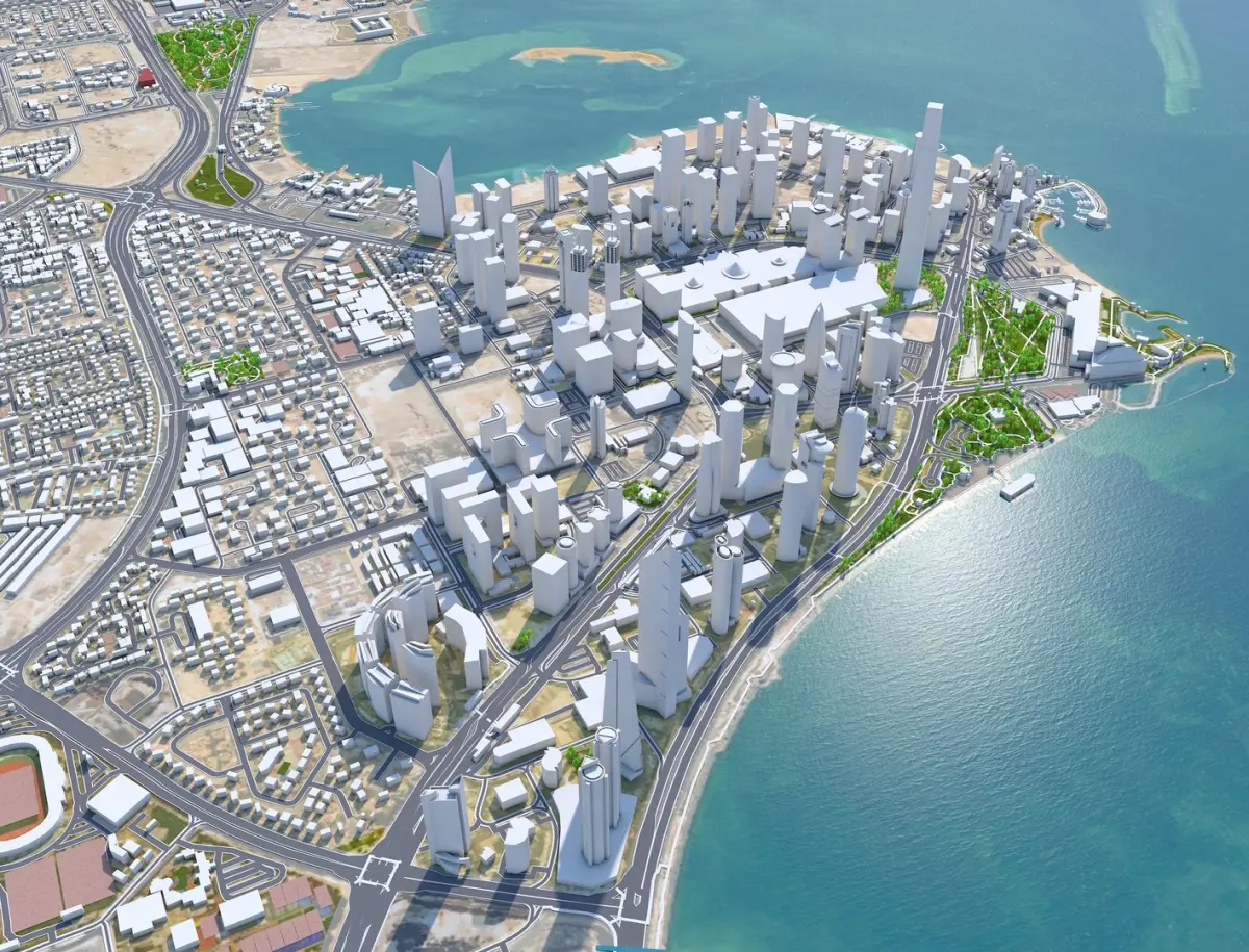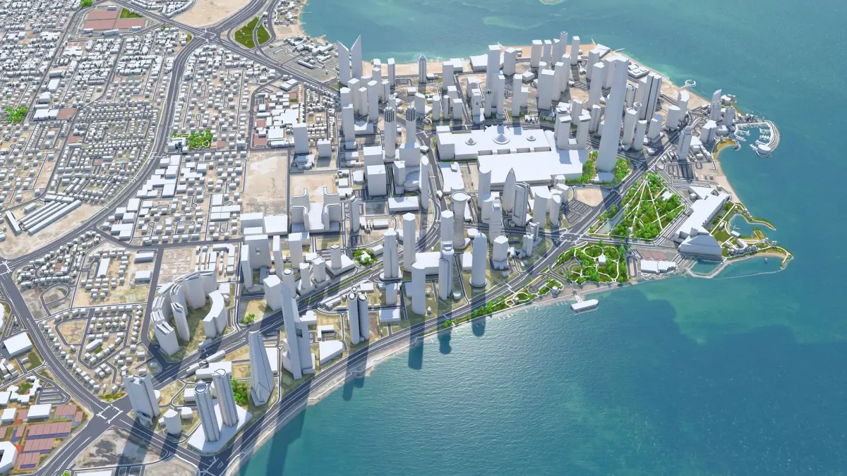 Accurate 3D city model and its surrounding area based on GIS data Year 2022