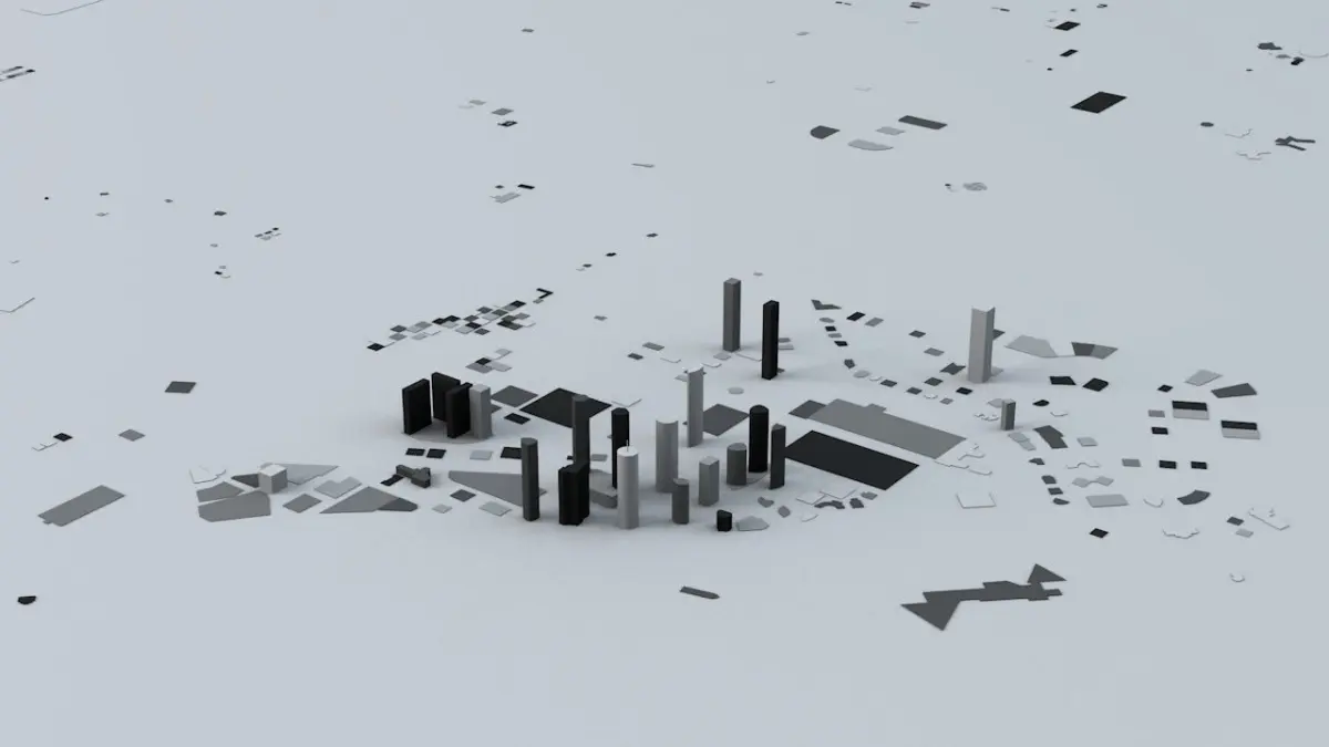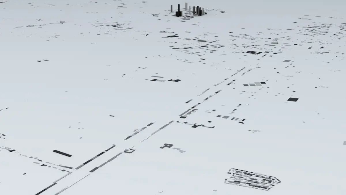 - the model is positioned on a flat surface (all buildings are on the “floor” - no elevation data included)
