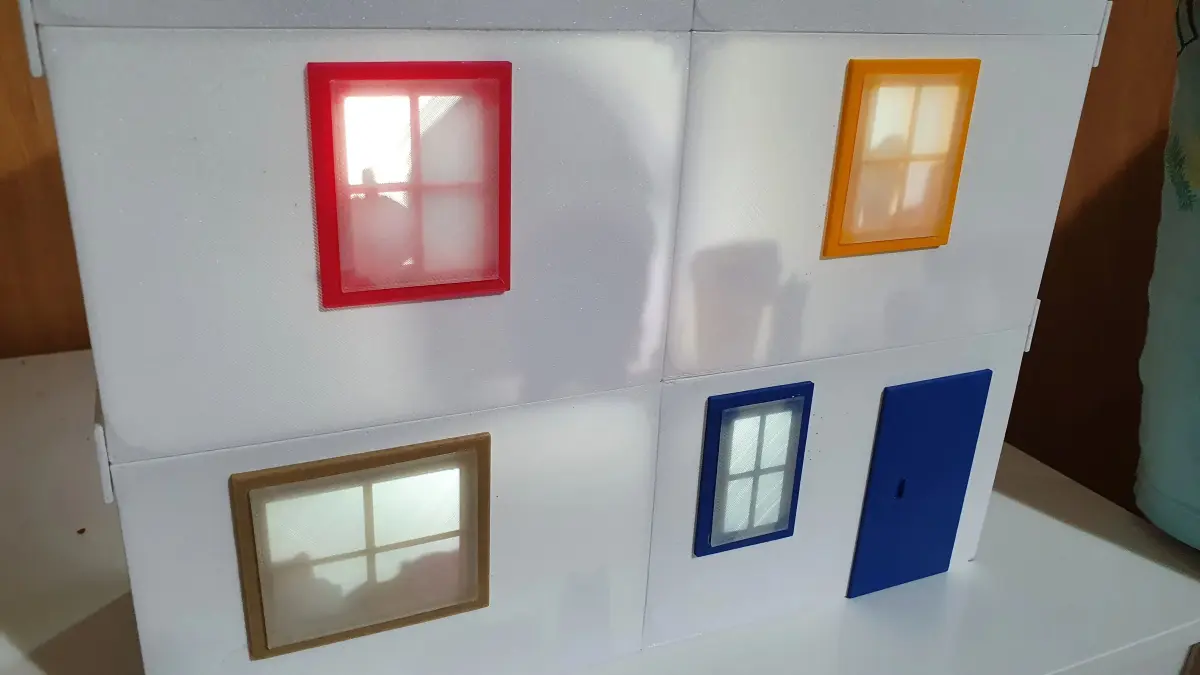 Dollhouse, adjustable parameters in OpenSCAD. Rooms with or without windows, doors, attics, roofs, modular construction. According to your imagination. Print with standard profile (layer height 0.2mm, filling 15%).