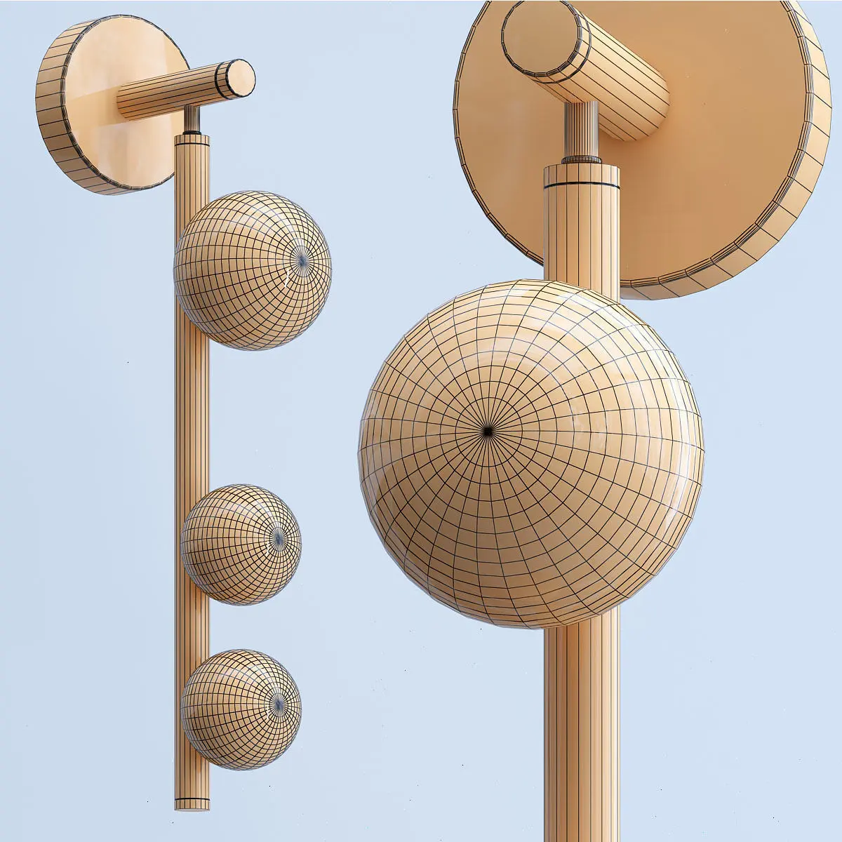 Sconces with three spherical lampshades of different diameters