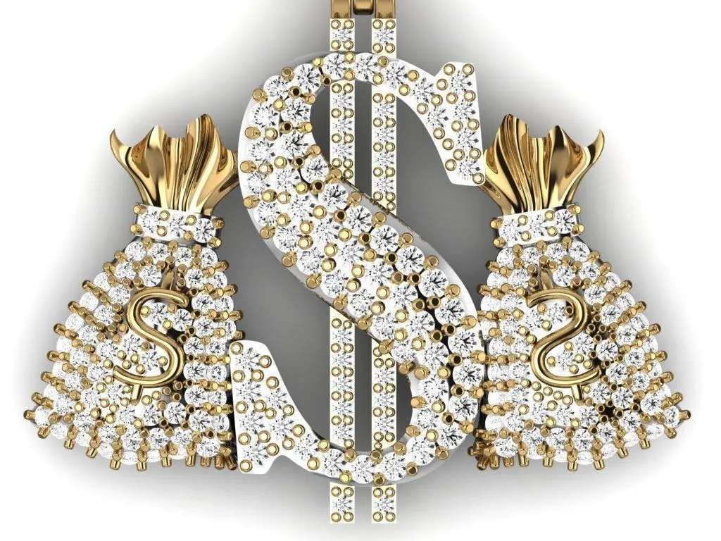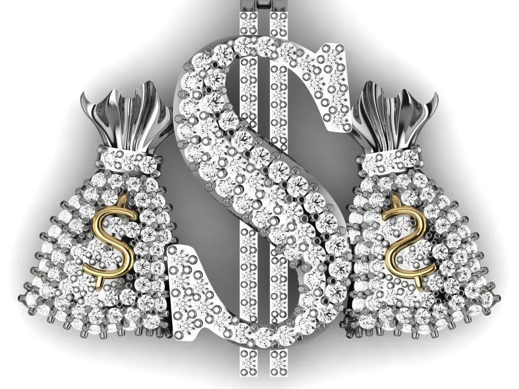 A necklace made of dollar bags with tiny gems on it.You can make it with any material and its original file will be provided to you for changes