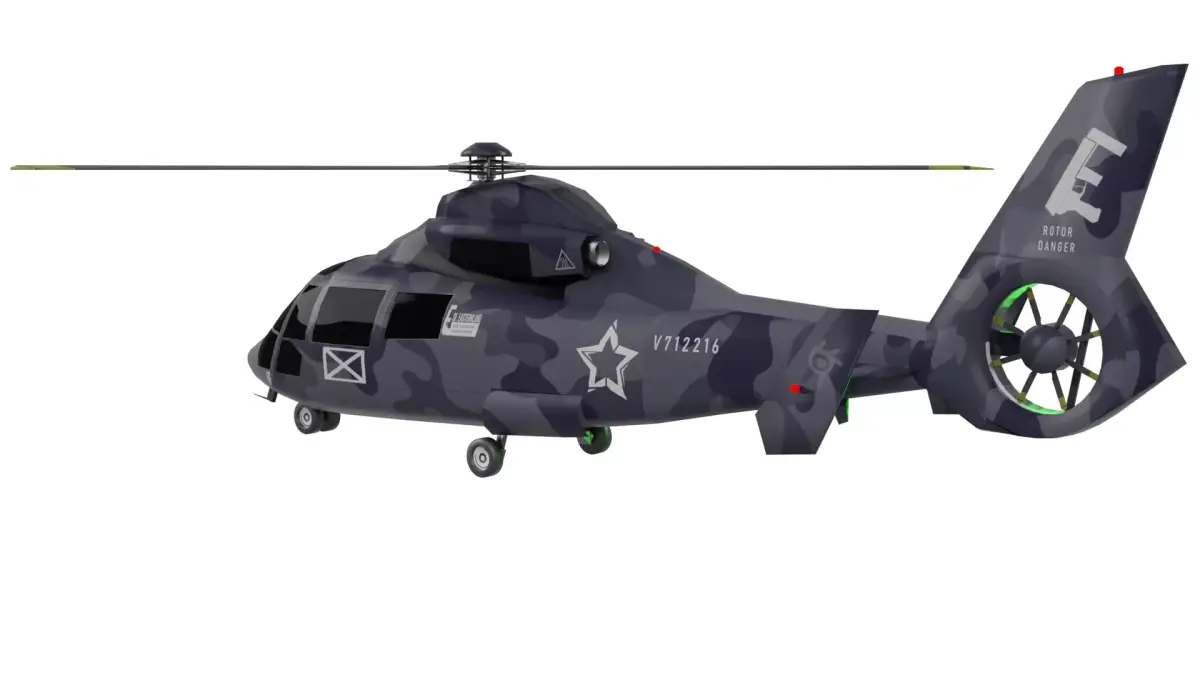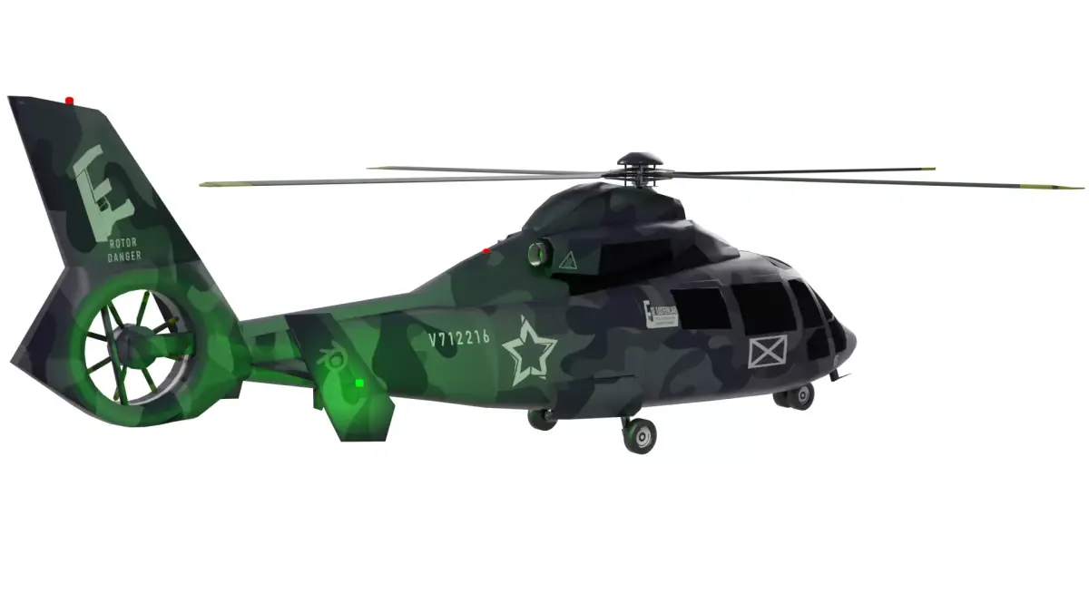 This Dolphin Helicopter (Harbin Z-9) is a high quality model that will enhance detail and realism to your rendering projects. The model has a fully textured design that allows for close-up renders, and was originally modeled in Blender and rendered with KeyShot.