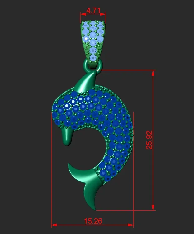 Created with love and attention to detail, the Dolphin Pendant is a 3D model that embodies the grace and freedom of these amazing a creaturesse. The pendant is decorated with sparkling stones that give it sophistication and luxury. You can choose the color of the stones to emphasize your personality and style.The pendant is created in 3D format, which allows you to view it from all sides and appreciate all its beauty.The Dolphin pendant will be a wonderful gift for yourself or a loved one who appreciates beauty and symbolism.The dolphin is a symbol of freedom, joy, friendship and positive energy. The Dolphin pendant will be a wonderful reminder that you should always strive for your dreams and never give up.