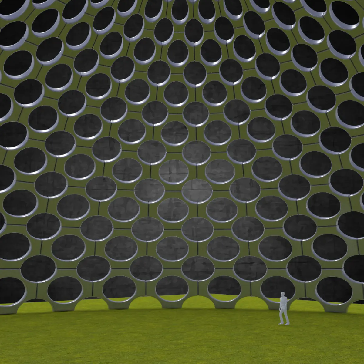 Dome hexagonal grid circular pattern large scale structure Low-poly 3D model