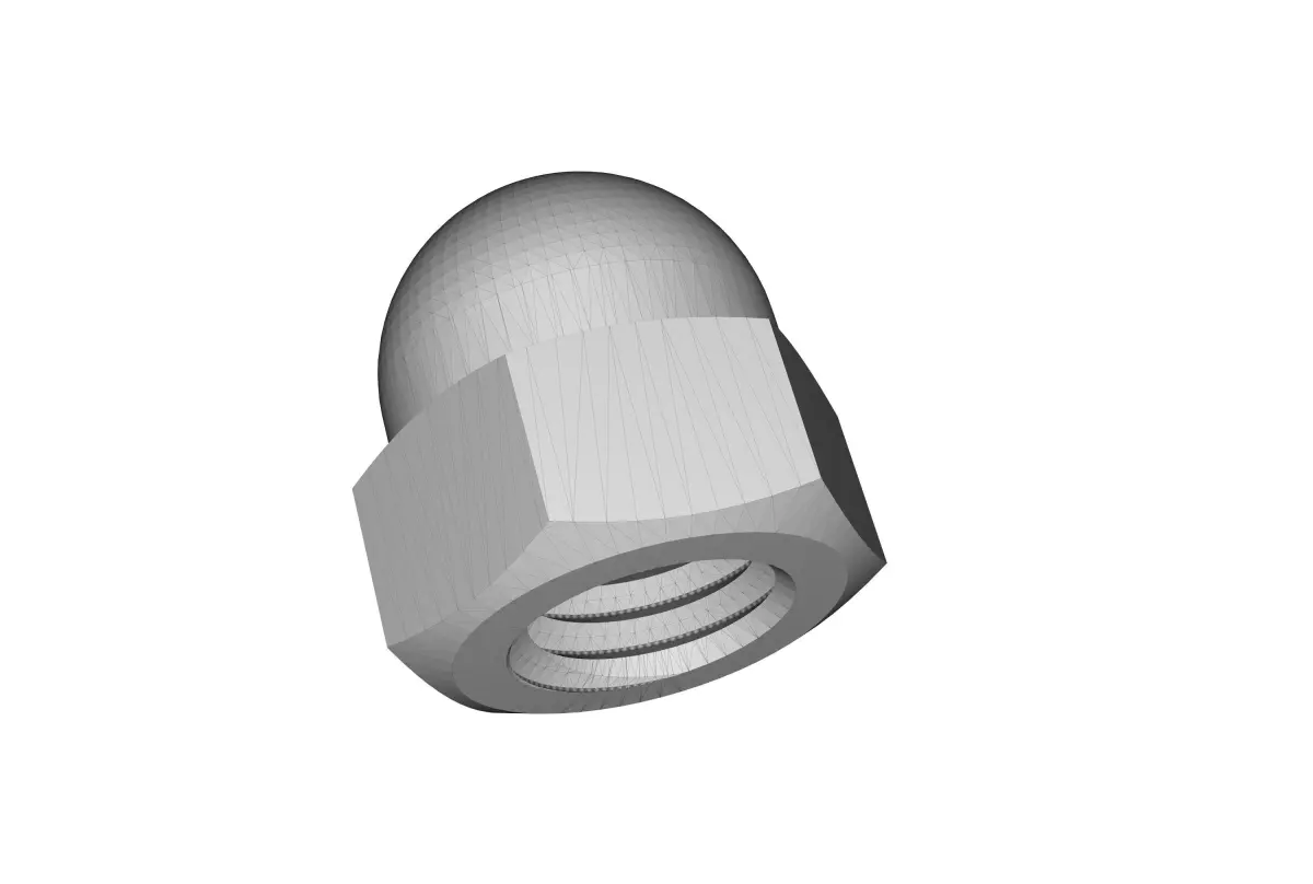 Dome nut. It's Solidworks(SLDPRT) model was exported in other CAD formats:(X_T, IGES, STEP, OBJ and STL). This 3D model can used in producing on CNC machines and for 3D printing.