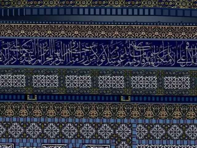 Real live measurements of the dome of the rock with no use of photos for the textures, i have build all textures so you can make very close up render scene.The bricks have one texture file . Thousand of bricks are arranged as the real walls of the dome.Also i included a pdf files with quranic verses in vector format so you can used it in cnc or make your own texture.