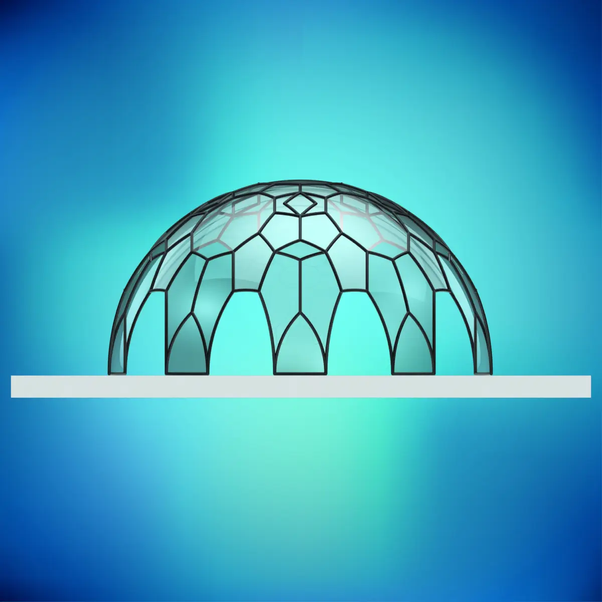 Dome pentagonal array dome wireframe with glass panels Low-poly 3D model