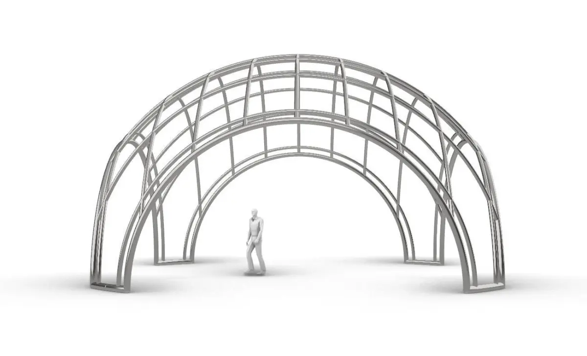 Dome Structure with Arched Entry and Diagonal Wireframe Design 3D model