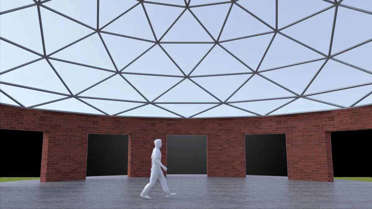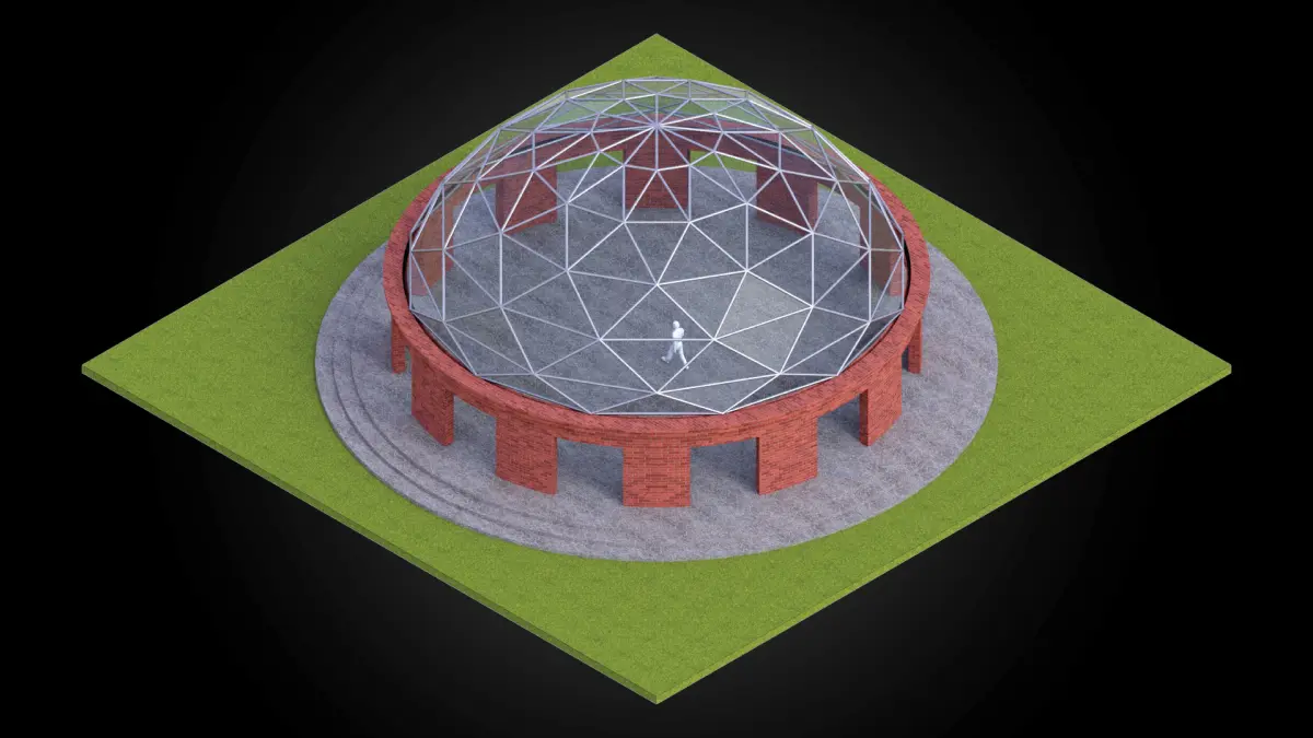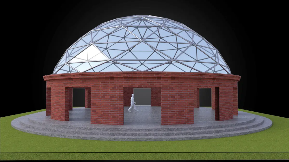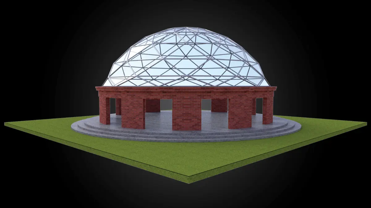 Dome with glass panels triangulated wire-frame steel structure 3D model
