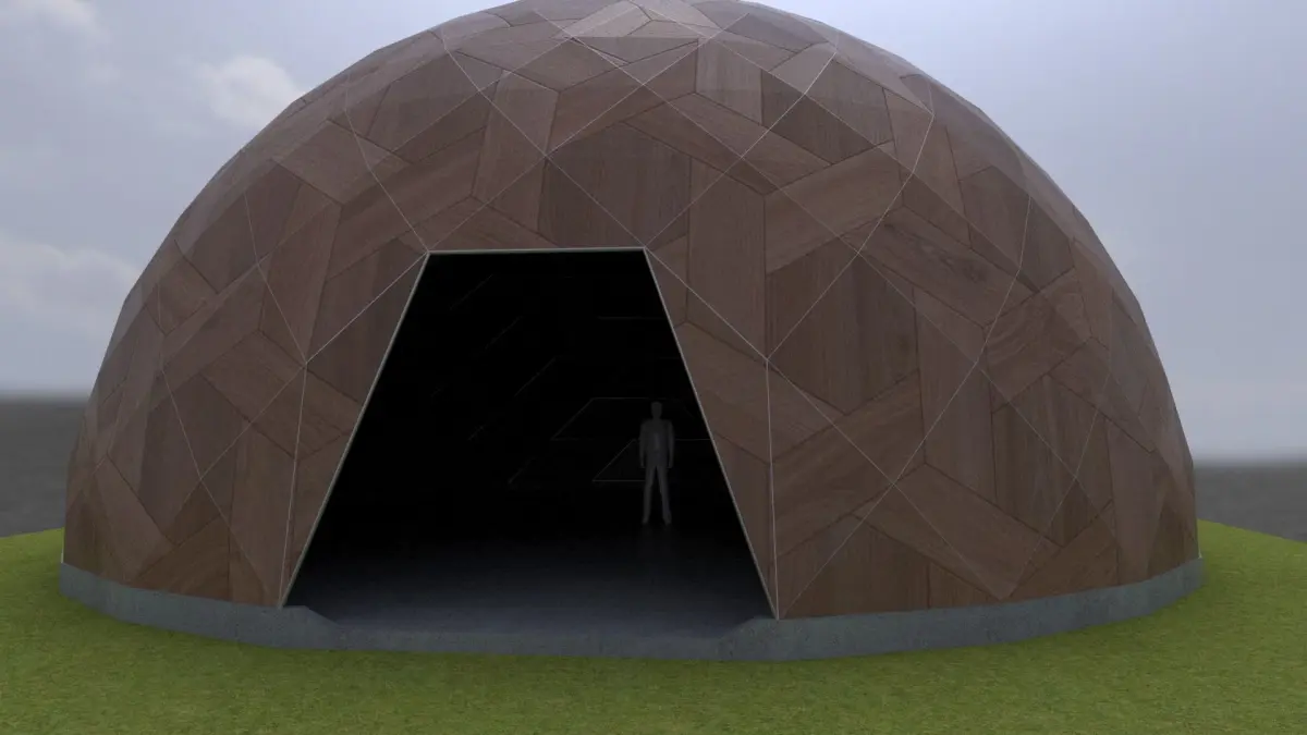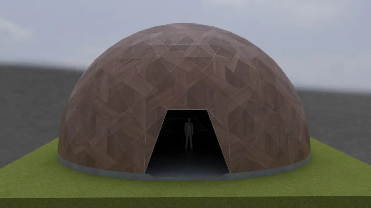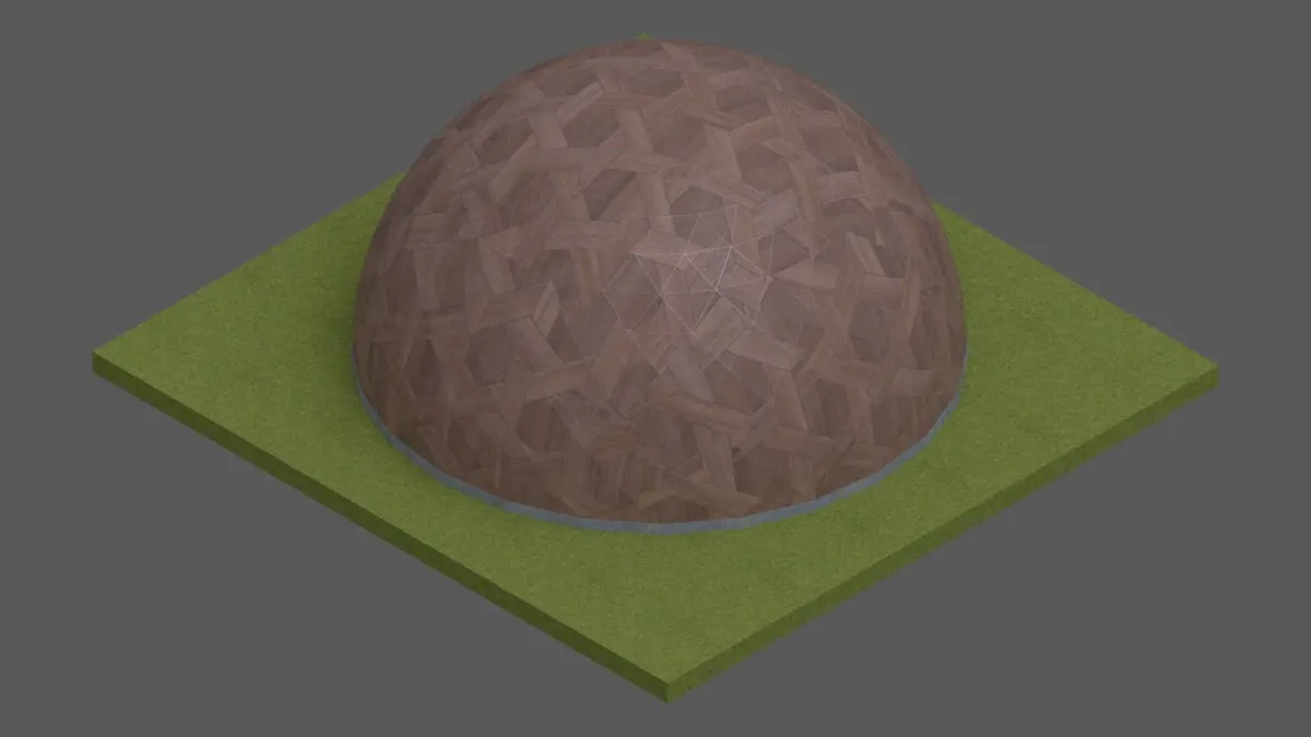 Dome -Wood Triangulated with entry opening and foundation Low-poly 3D model