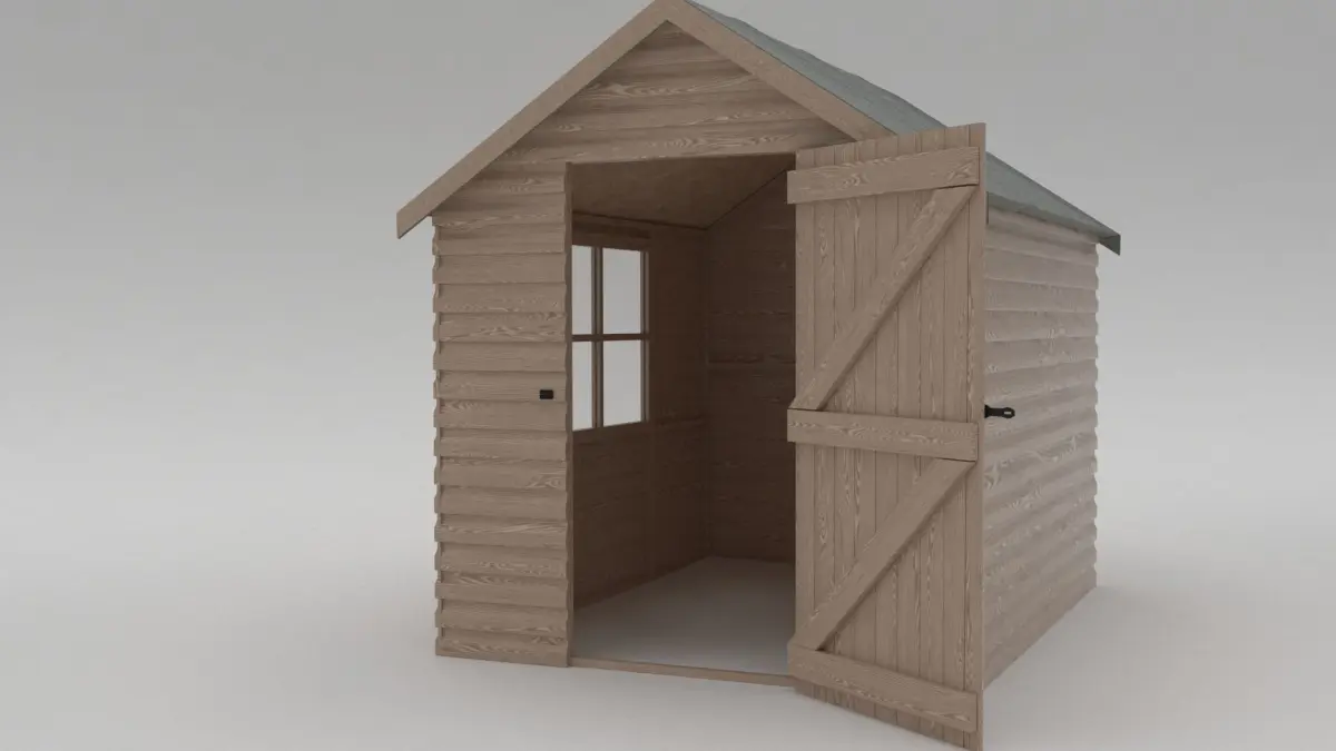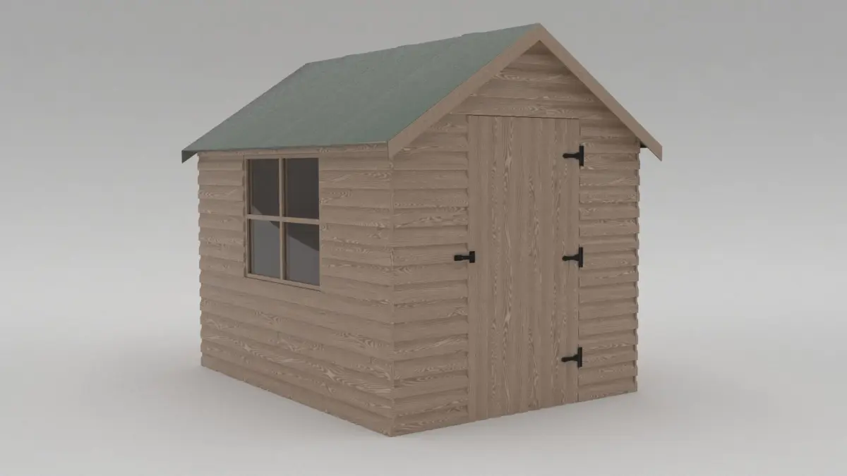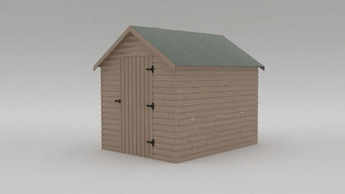 Rigged and textured garden shed ideal for any domestic exterior scene, complete with door features hinges and lock, includes internal detail/structure