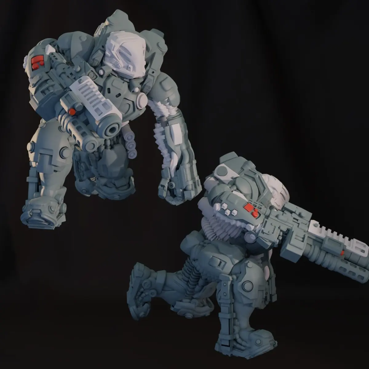 Dominion Heavy Infantry for that popular tabletop game, multi poseable using ball joins in the arms, as well as full single print models avaible. Includes Lychee files of the pre-supported STLs.