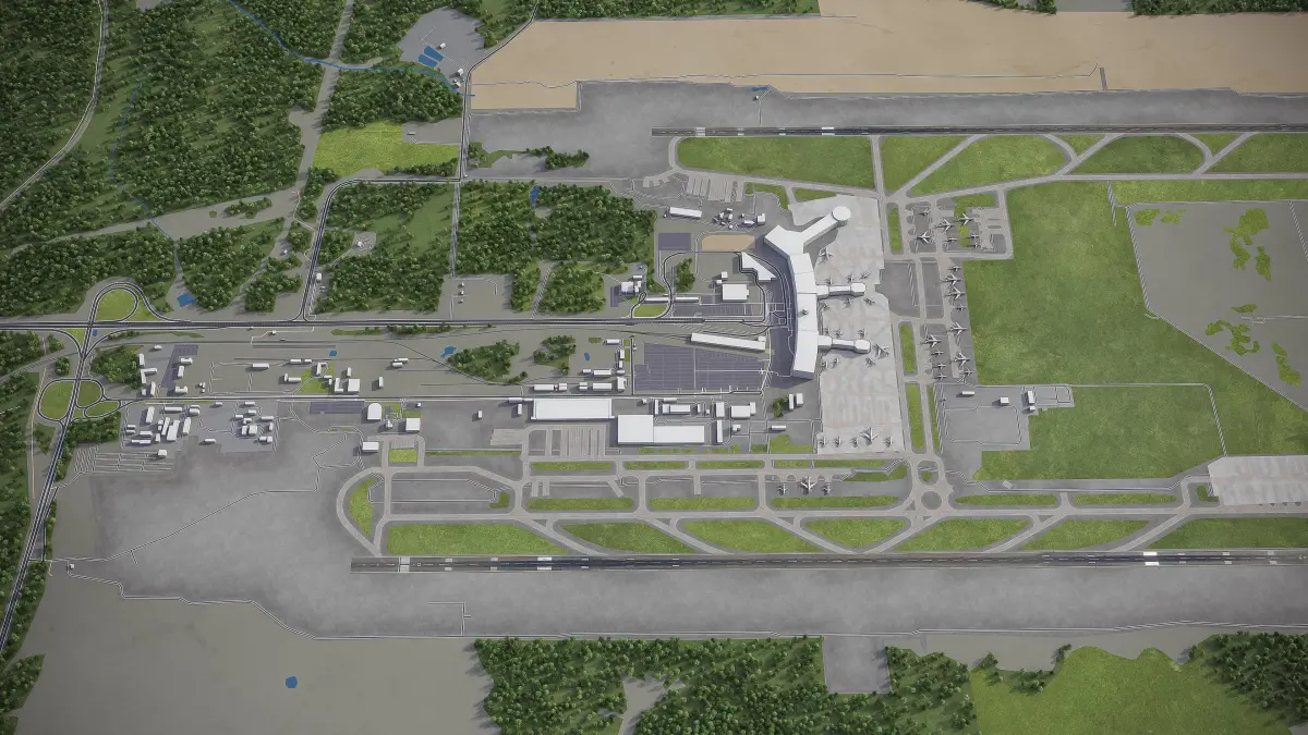 - Trees, vegetation, land-use and airport surface with the textures assigned