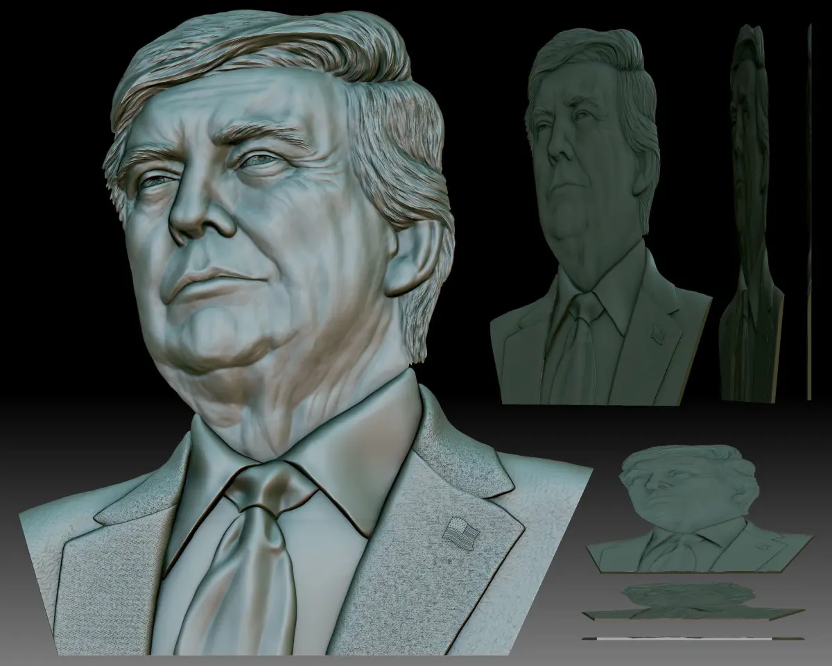 Trump portrait 3D model CNC STL.Bas-relief for CNC router or 3D printer.