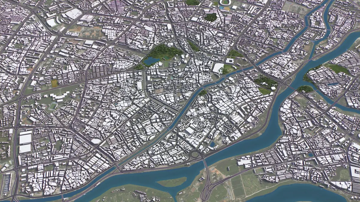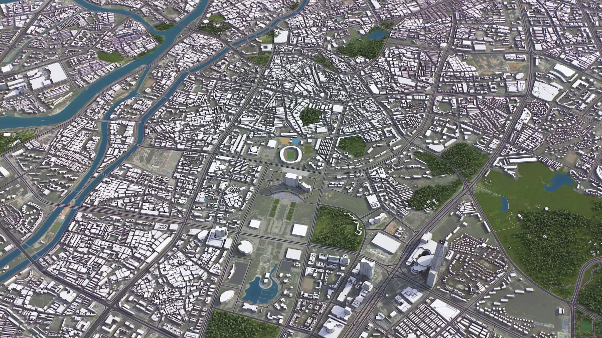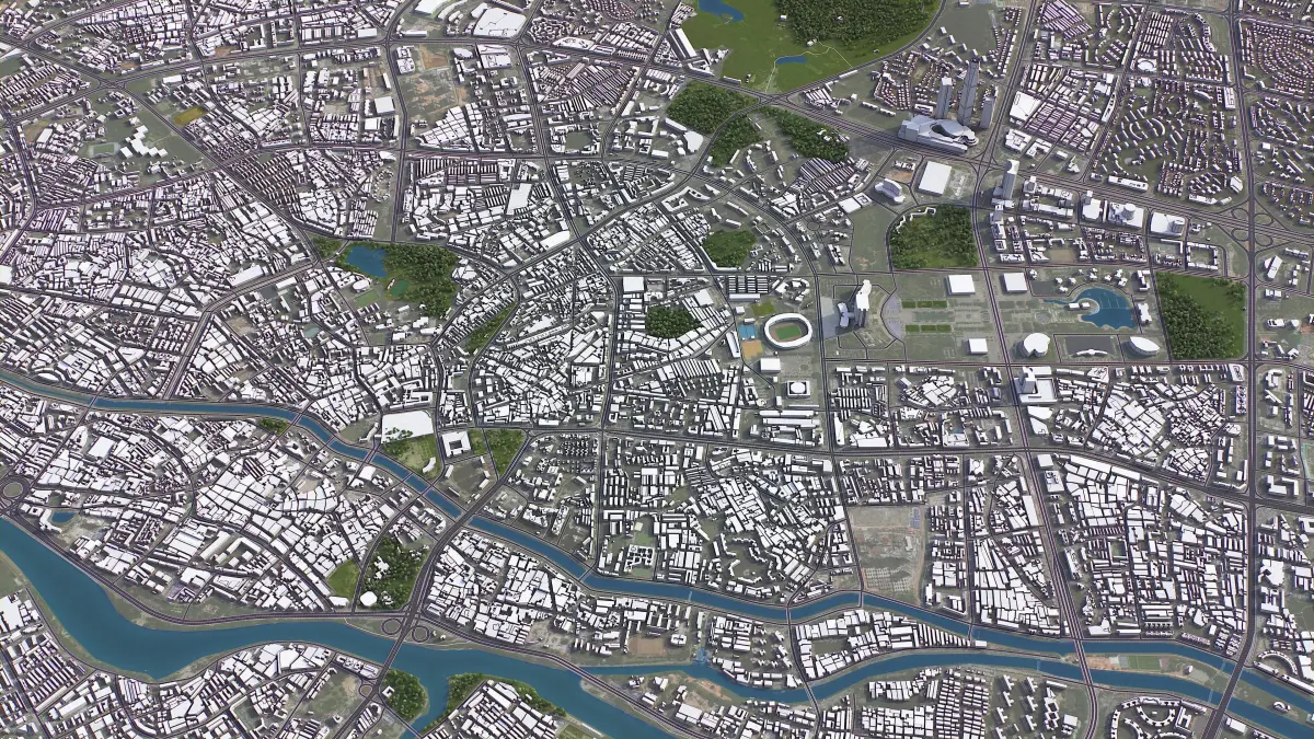- Full city extents up to 100 x 100 km — or crop to an area of interest for better format compability and scene performance