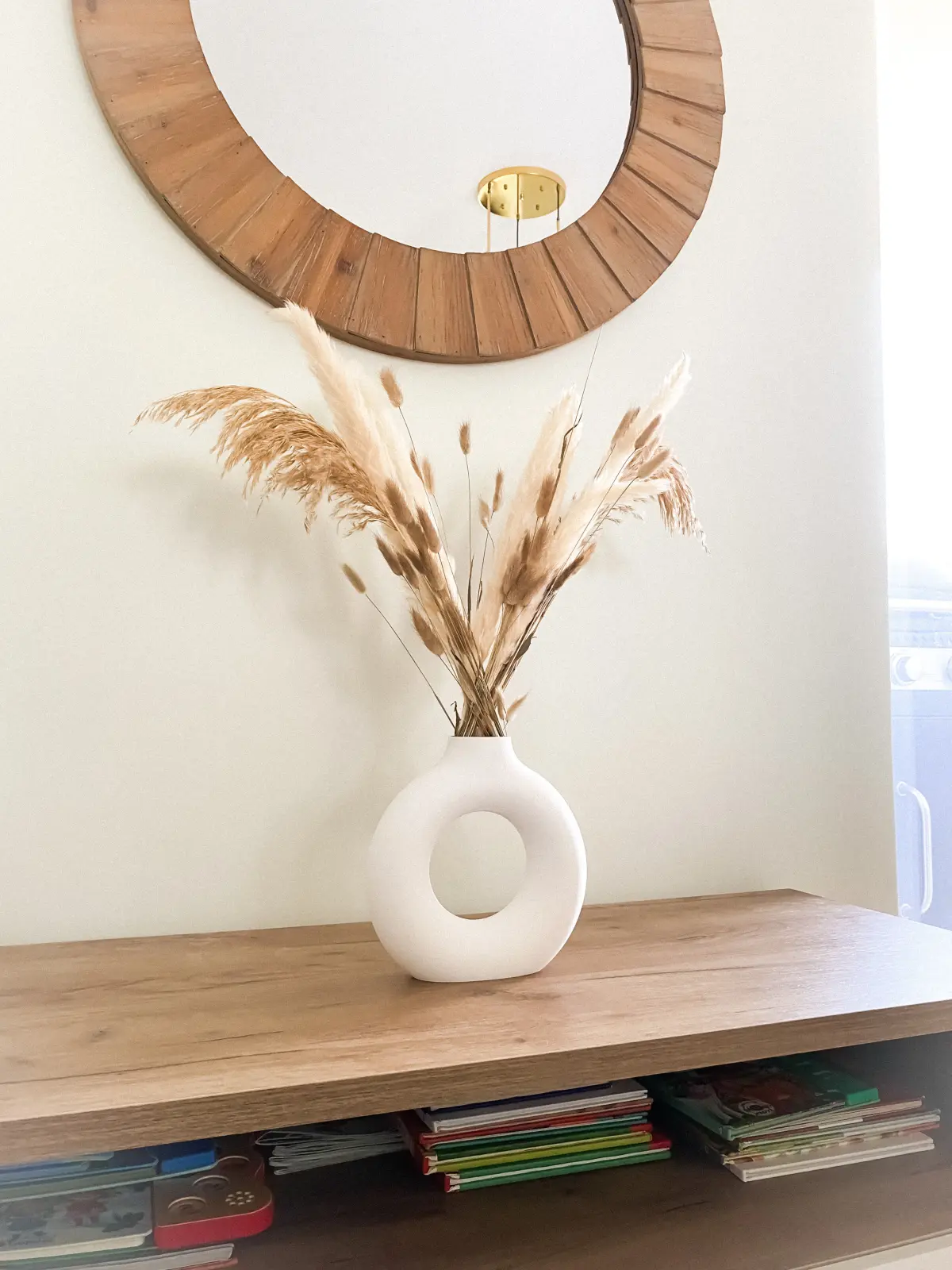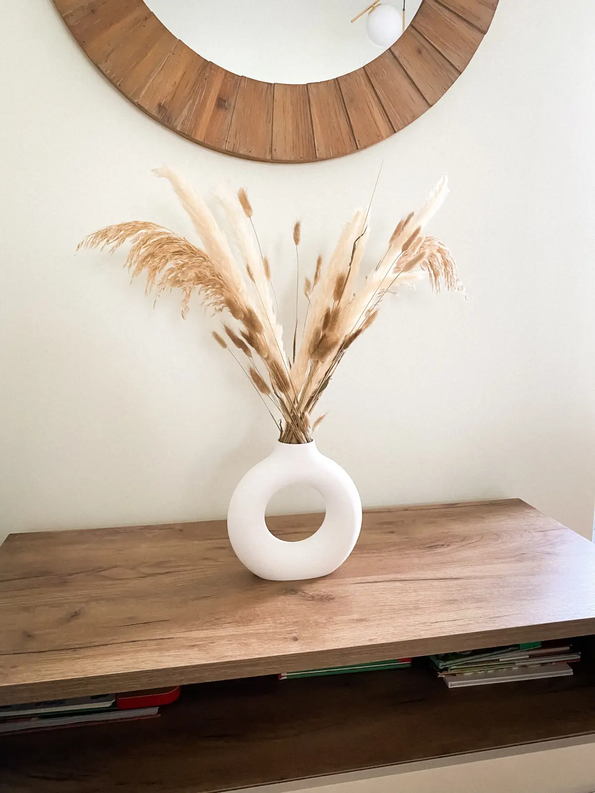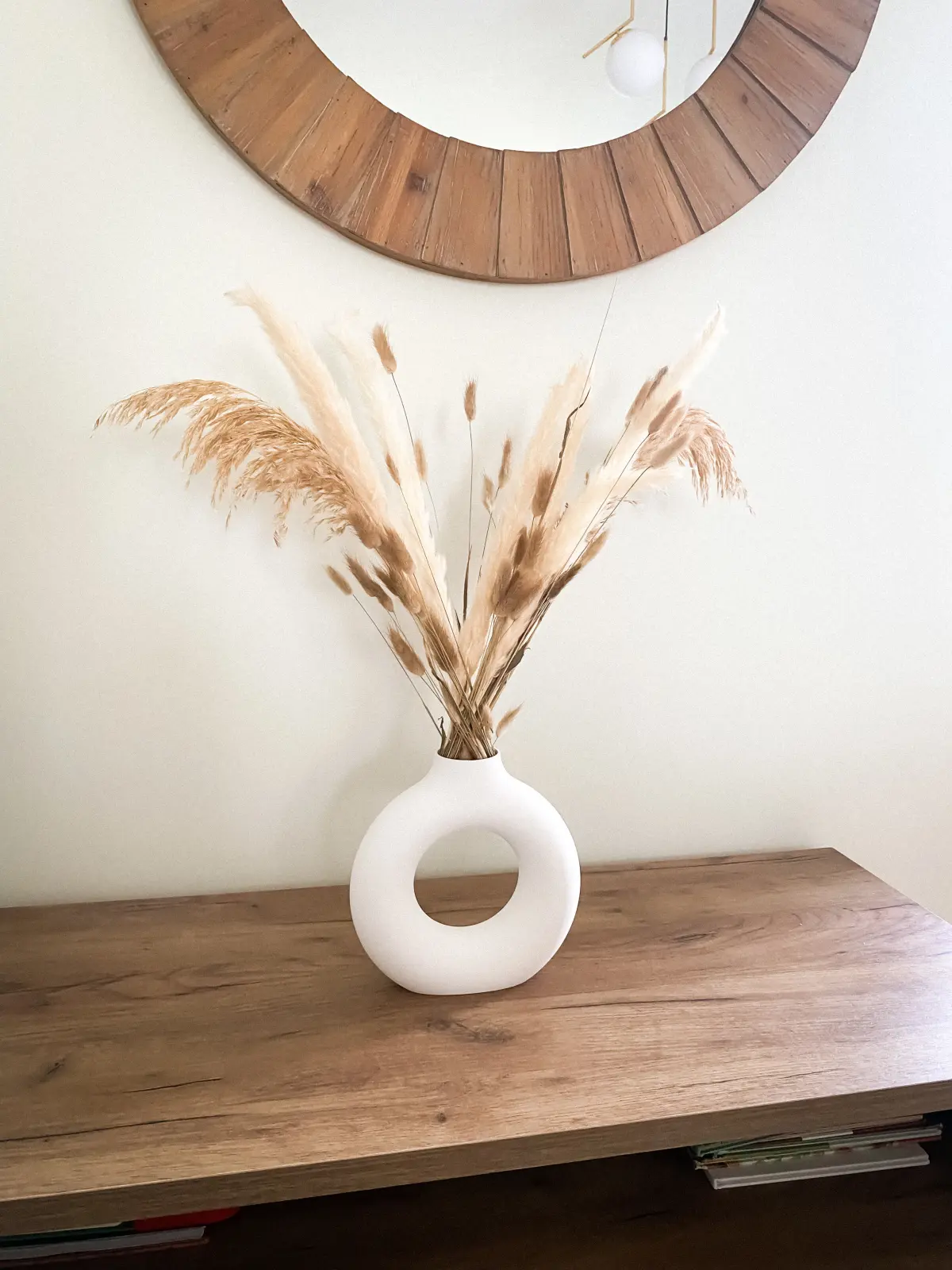 Elevate your home décor with this stunning boho-style donut-shaped vase, designed to stand out from the crowd. While similar models abound, this vase features a flawlessly smooth neck, free of visible curve transition lines, offering a more polished and professional look.